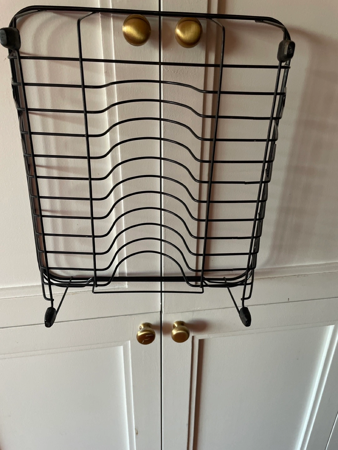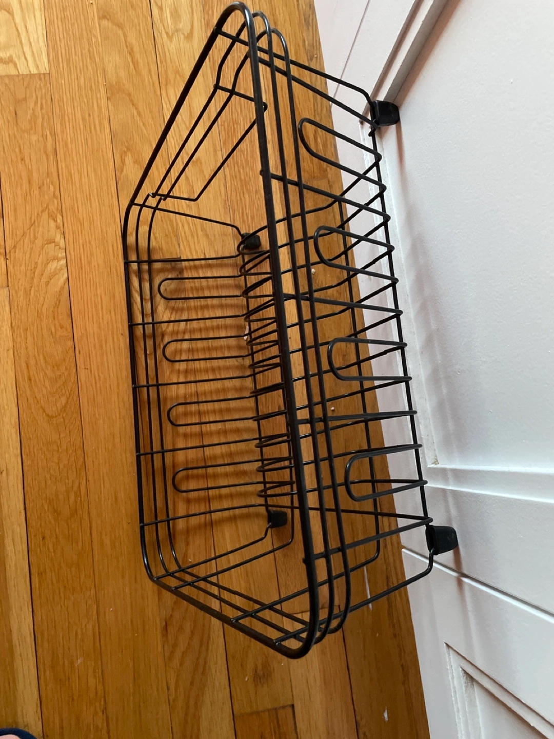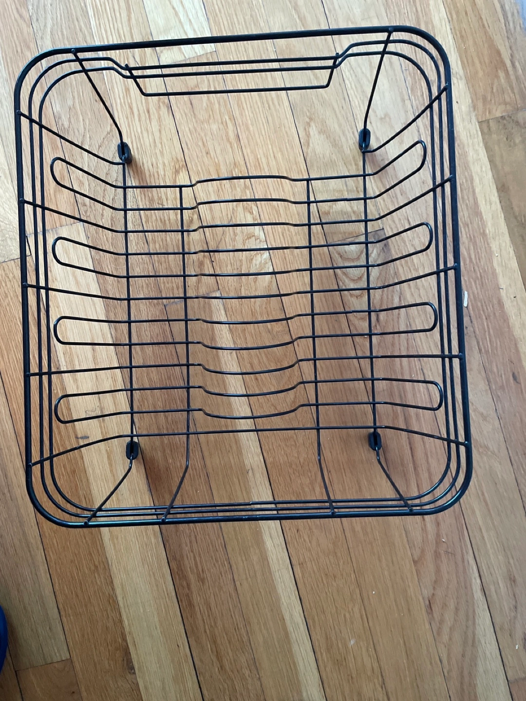 Selling a black metal wire basket. It's in great condition and ready to organize your space! Perfect for kitchen, bathroom, or any room needing a bit of tidying up