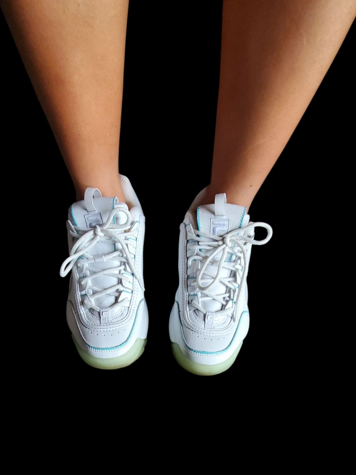 Selling a pair of Fila Disruptor sneakers in white. They are in great condition and ready for a new home! These shoes are stylish and comfortable for everyday wear.