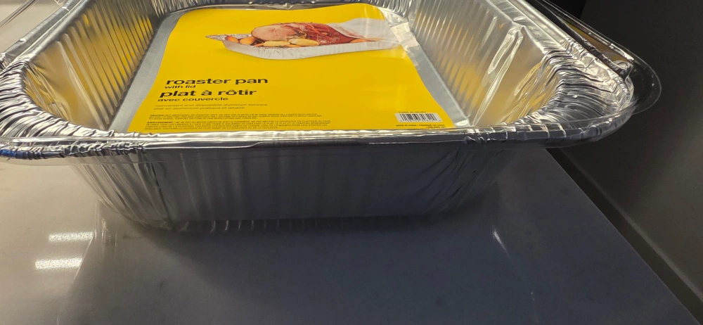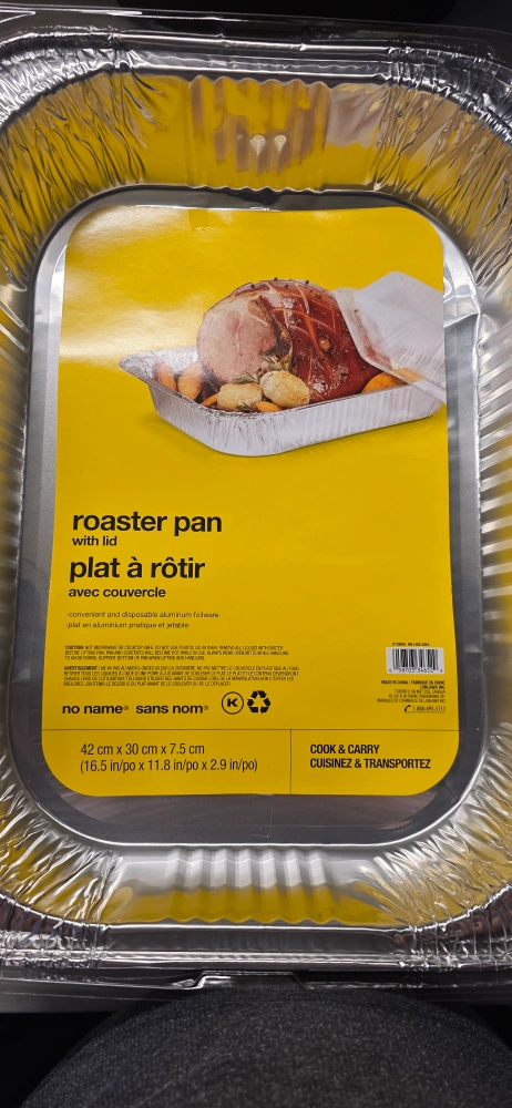 Selling a brand new no name roaster pan with lid. It's convenient and disposable aluminum foilware. The size is 42 cm x 30 cm x 7.5 cm (16.5 in/po x 11.8 in/po x 2.9 in/po)