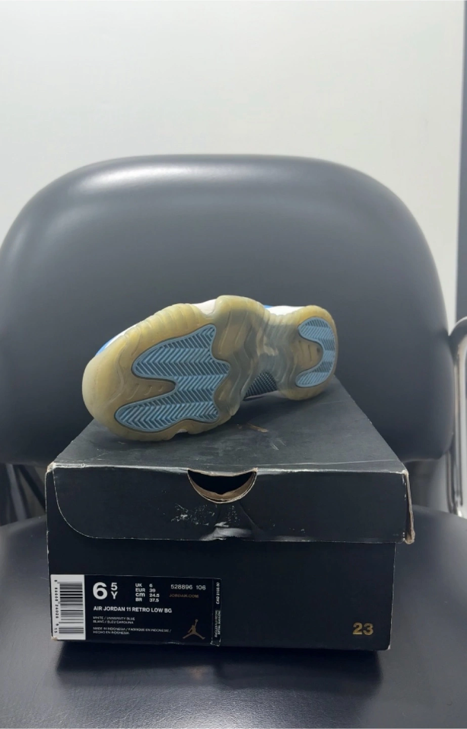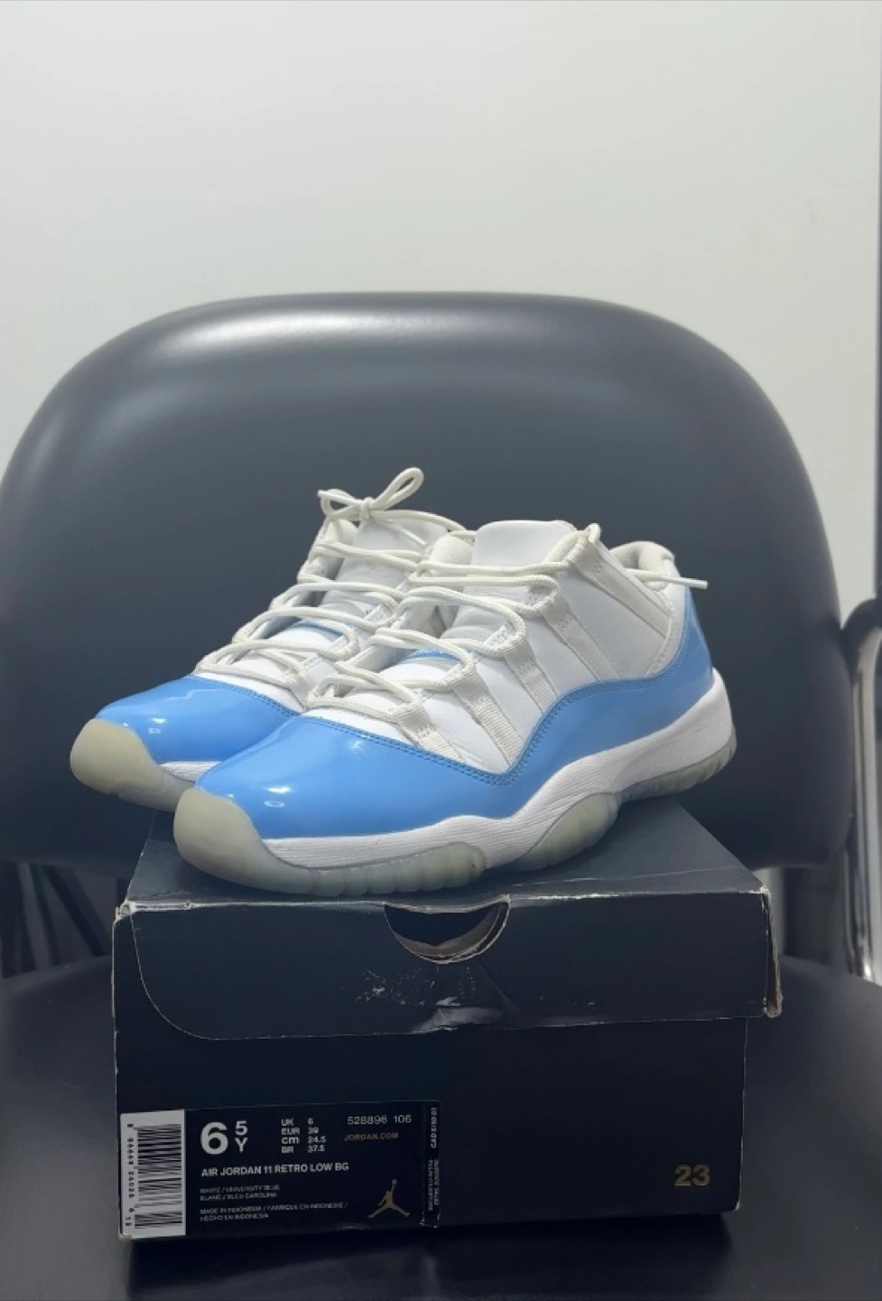 Selling a pair of Air Jordan 11 Retro Low unc sneakers in size 6.5Y. These are a stylish and comfortable choice for everyday wear. They come with the original box.