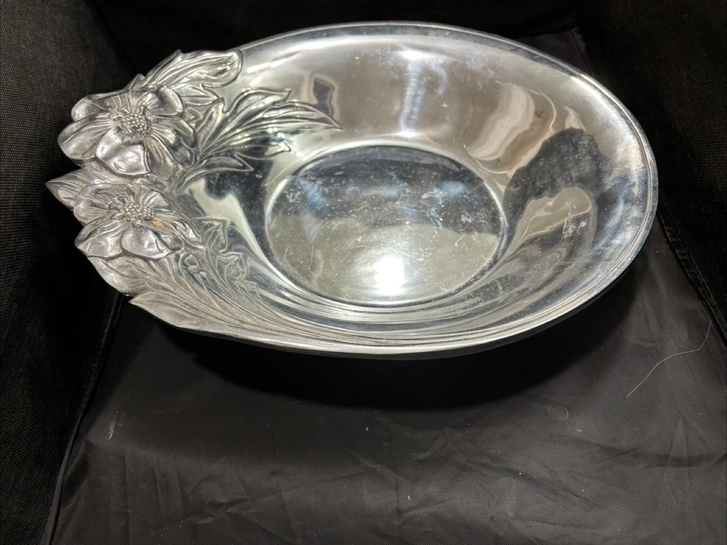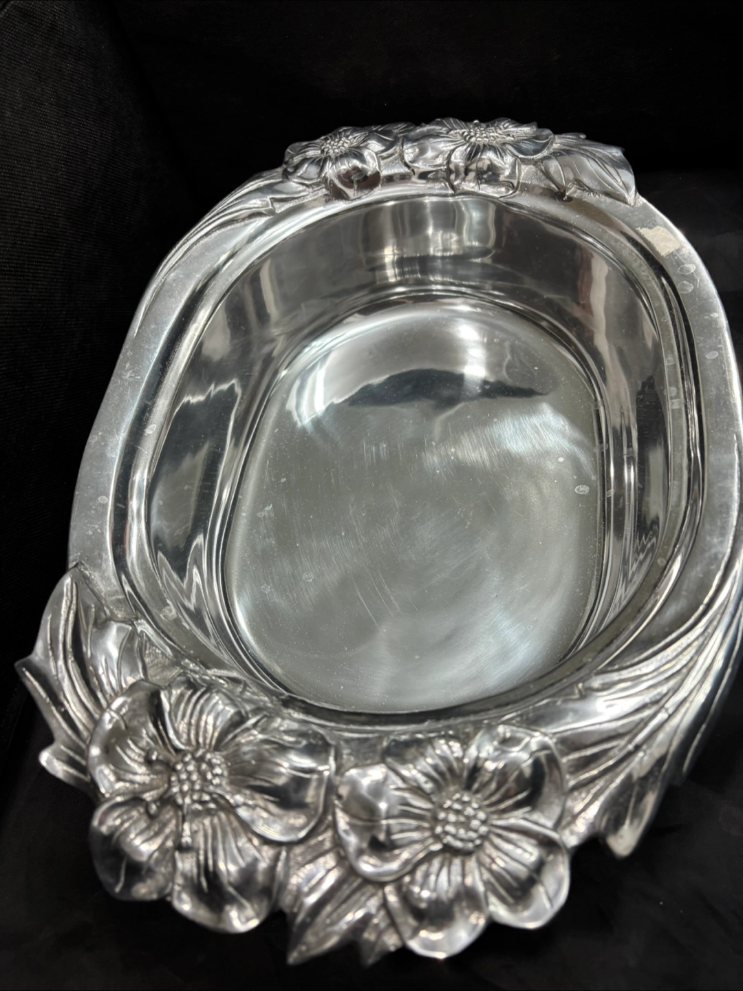 Hacienda Real - Vintage Mexican pewter - floral pattern - platter, bowl, lid & utensils. Very, very good Beautiful pattern