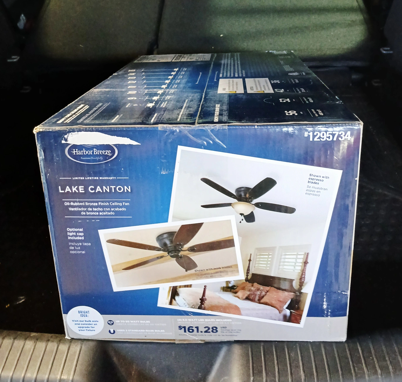 80Selling a brand new Harbor Breeze Lake Canton 52-inch Oil-Rubbed Bronze Finish Ceiling Fan! Key features include: - 52-inch size - Oil-rubbed bronze finish - Reversible motor - Light kit included Brand New, Factory Sealed! Meetup will be at the Skokie CVS. Cash only. π°