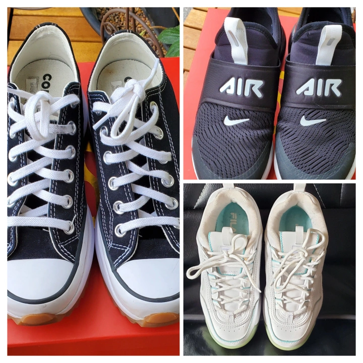 Selling a pair of Nike Air shoes and Converse Run Star Hike shoes. Both are in great condition and ready for a new home! They are comfortable and stylish, perfect for everyday wear.