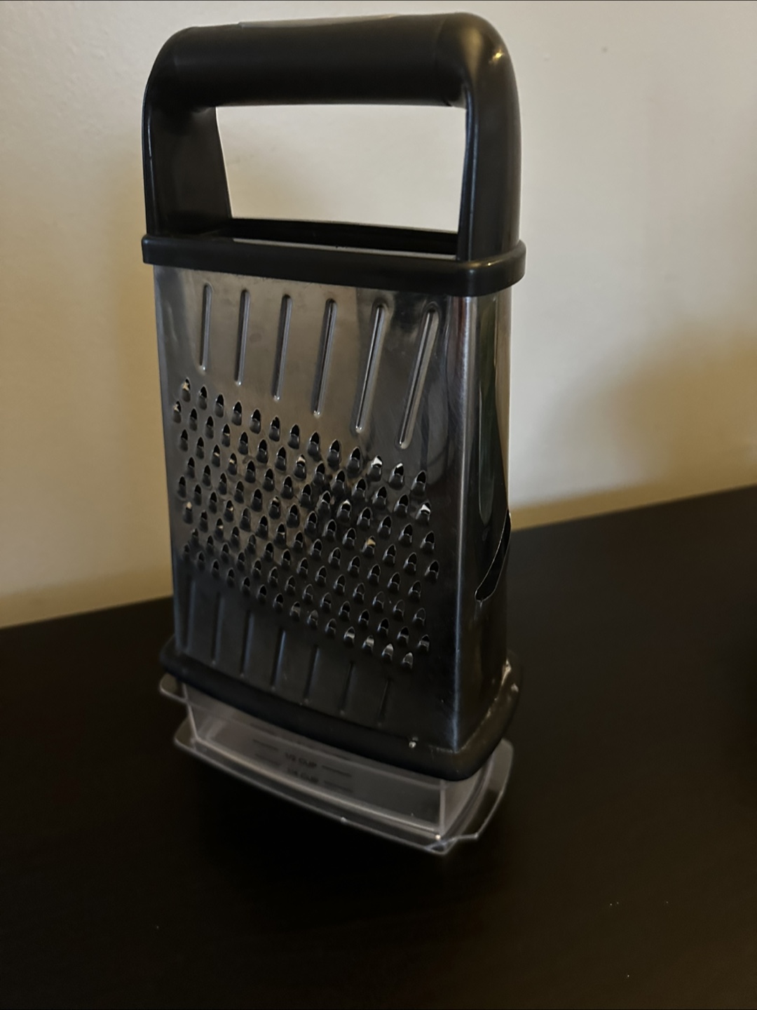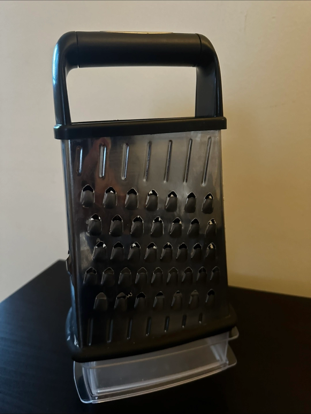 Selling a handy box grater that comes with its own container to catch all your freshly grated ingredients! It's perfect for cheese, veggies, and more. Makes cooking a breeze and keeps your countertops clean.