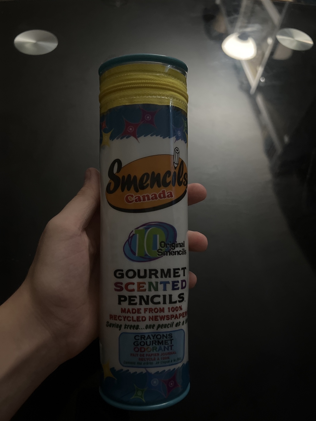 Selling a 10-pack of Smencils Gourmet Scented Pencils! These are made from 100% recycled newspaper. Flavours include: Root Beer, Bubble Gum, Cotton Candy, Grape, Orange, Watermelon, Very Berry, Cinnamon, Black Cherry