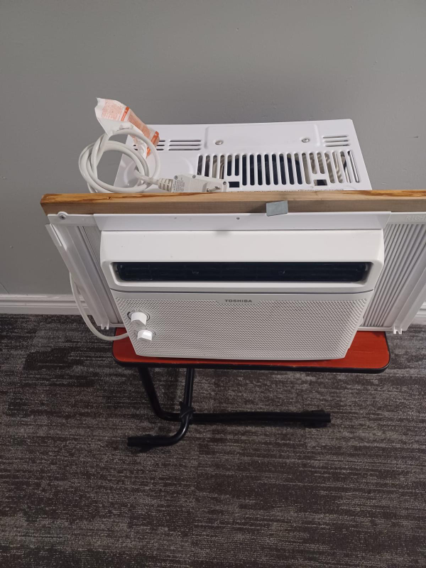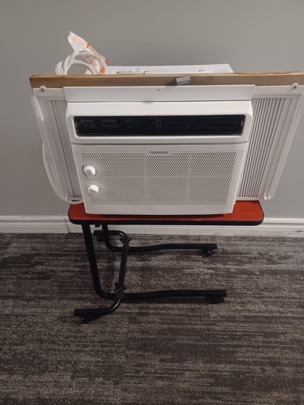 Selling a Toshiba window air conditioner. It's white and in good condition, ready to keep your place cool during the summer months. it's very clean and comes with installation accessories.