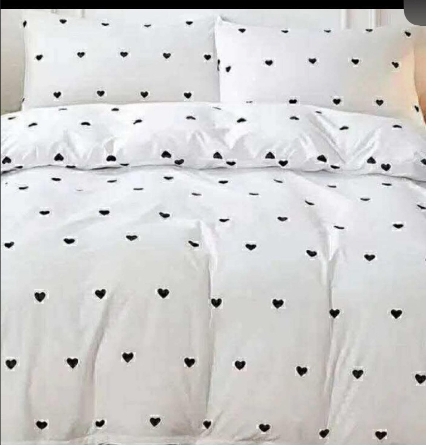 White Duvet Cover set with Black Hearts, Queen size