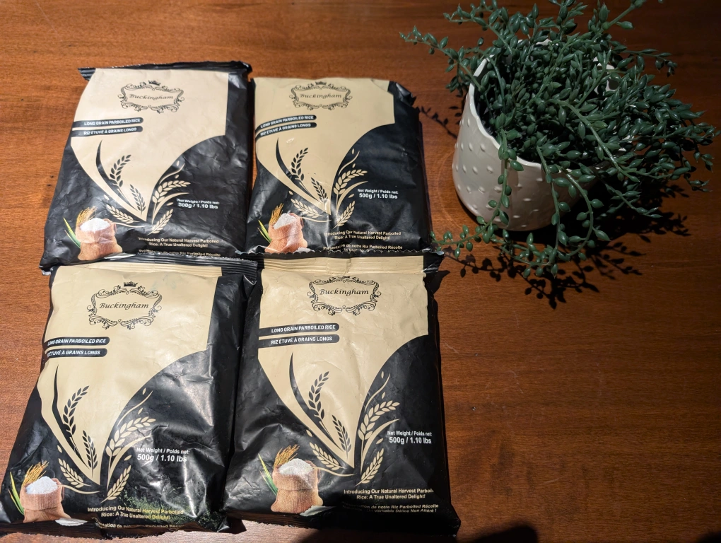 Selling a 4-pack of Buckingham Long Grain Parboiled Rice! Each bag contains 500g / 1.10 lbs of rice. Perfect for a variety of dishes.