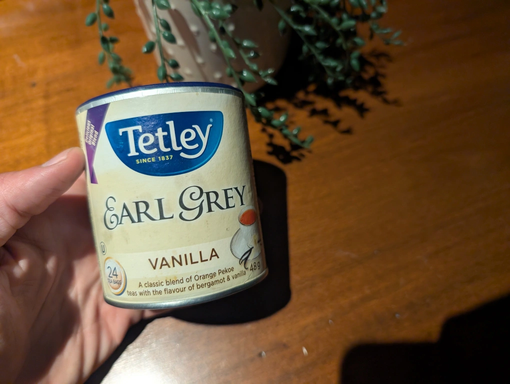 Selling a tin of 24 Tetley Earl Grey Vanilla bags. It's a classic blend of Orange Pekoe teas with the flavour of bergamot and vanilla.