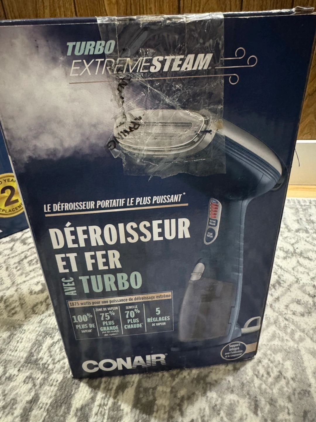 I'm selling a brand new Conair Turbo Extreme Steam handheld steamer! It comes with the box and all included components Retails for $99.97 Location (Mill woods)