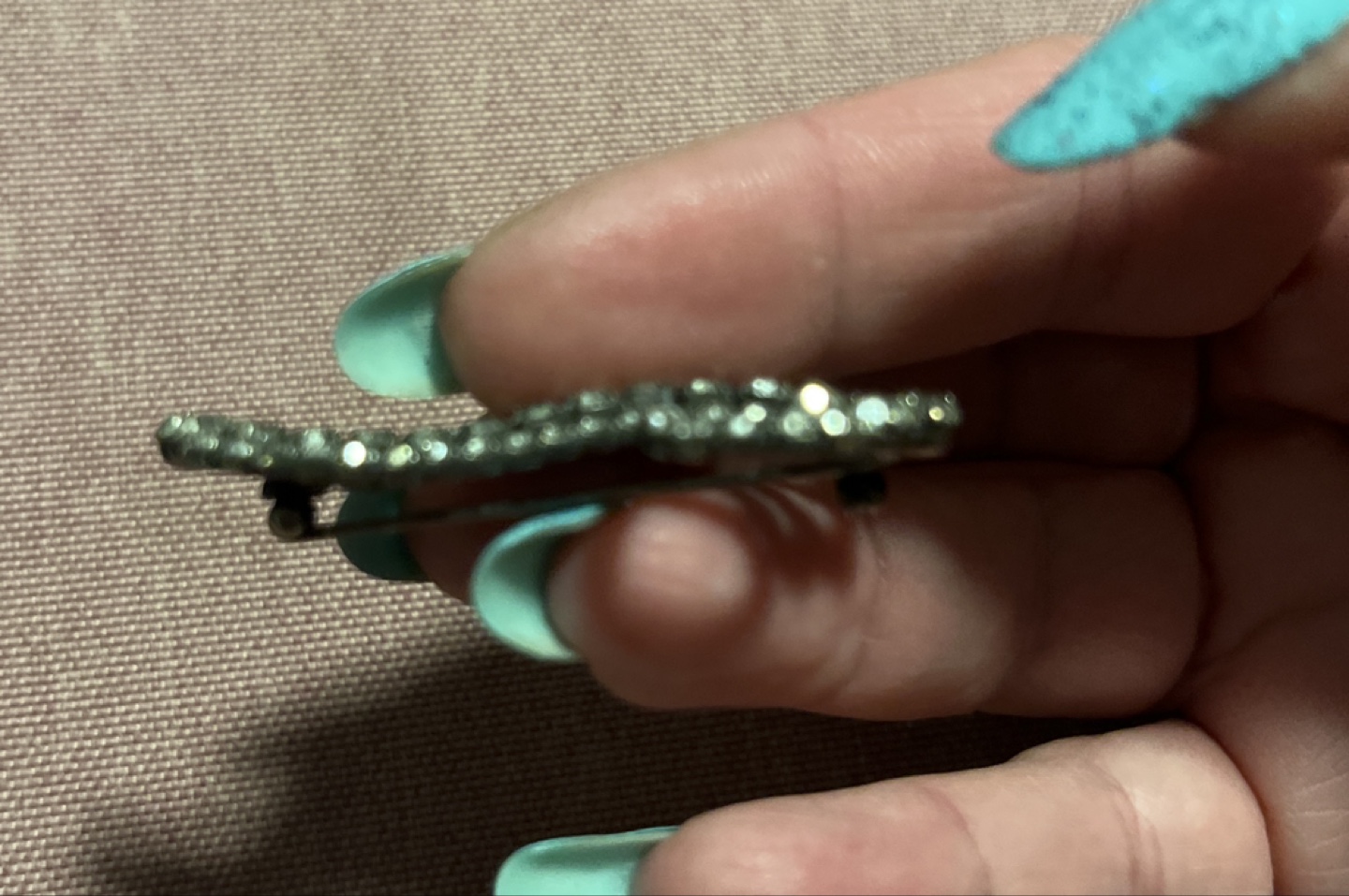 Sparkly vintage brooch with clear rhinestone details. It's in great shape and ready to add some bling to your outfit or collection!
