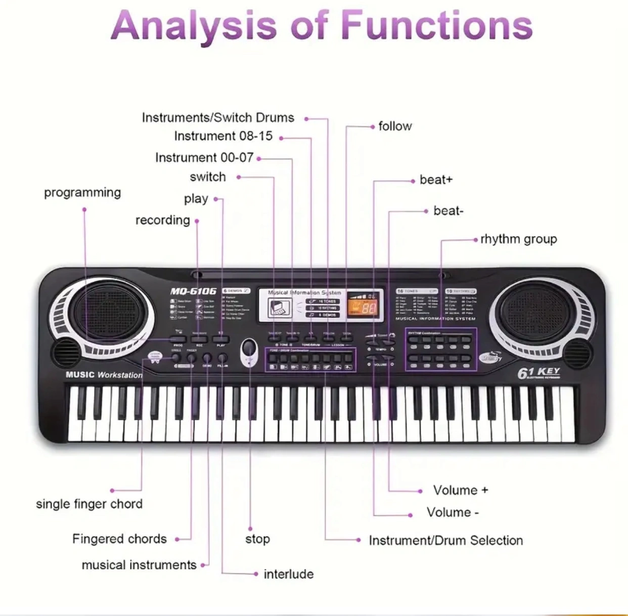 π Multi-function Features: Equipped with various sound effects, rhythms, and instrument tones, this versatile keyboard allows you to explore different styles and compositions.