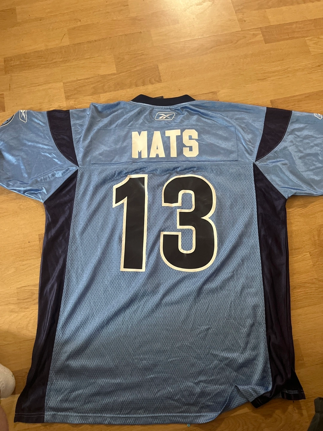 It's in great shape and features the number 13 and the name 'MATS' on the back. great condition other than some numbers peeling slightly. bought but barely used. 🧡