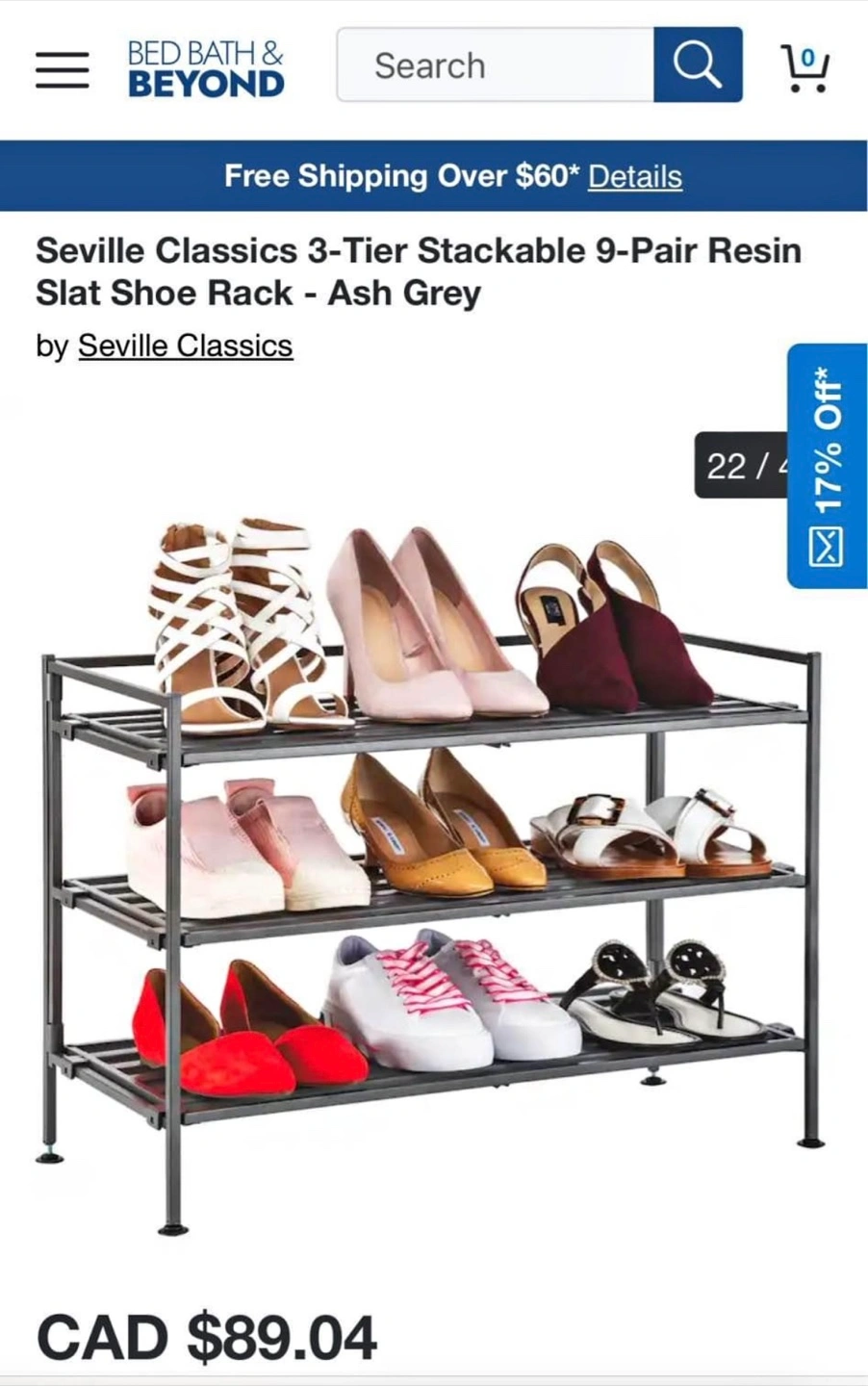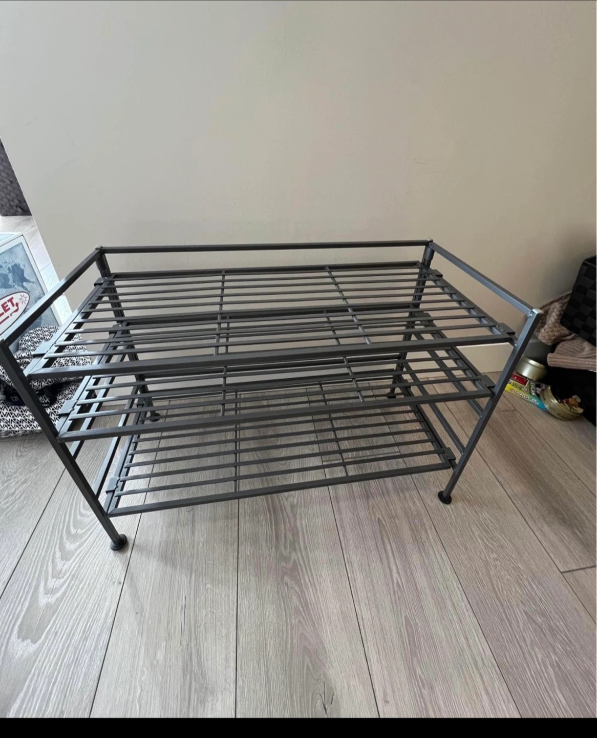 New and Sealed..Selling a Seville Classics 3-Tier Stackable 9-Pair Resin Slat Shoe Rack in Ash Grey! This sturdy shoe rack is perfect for keeping your footwear organized and your entryway tidy. It's in great shape and ready for a new home. Originally bought for $89.04