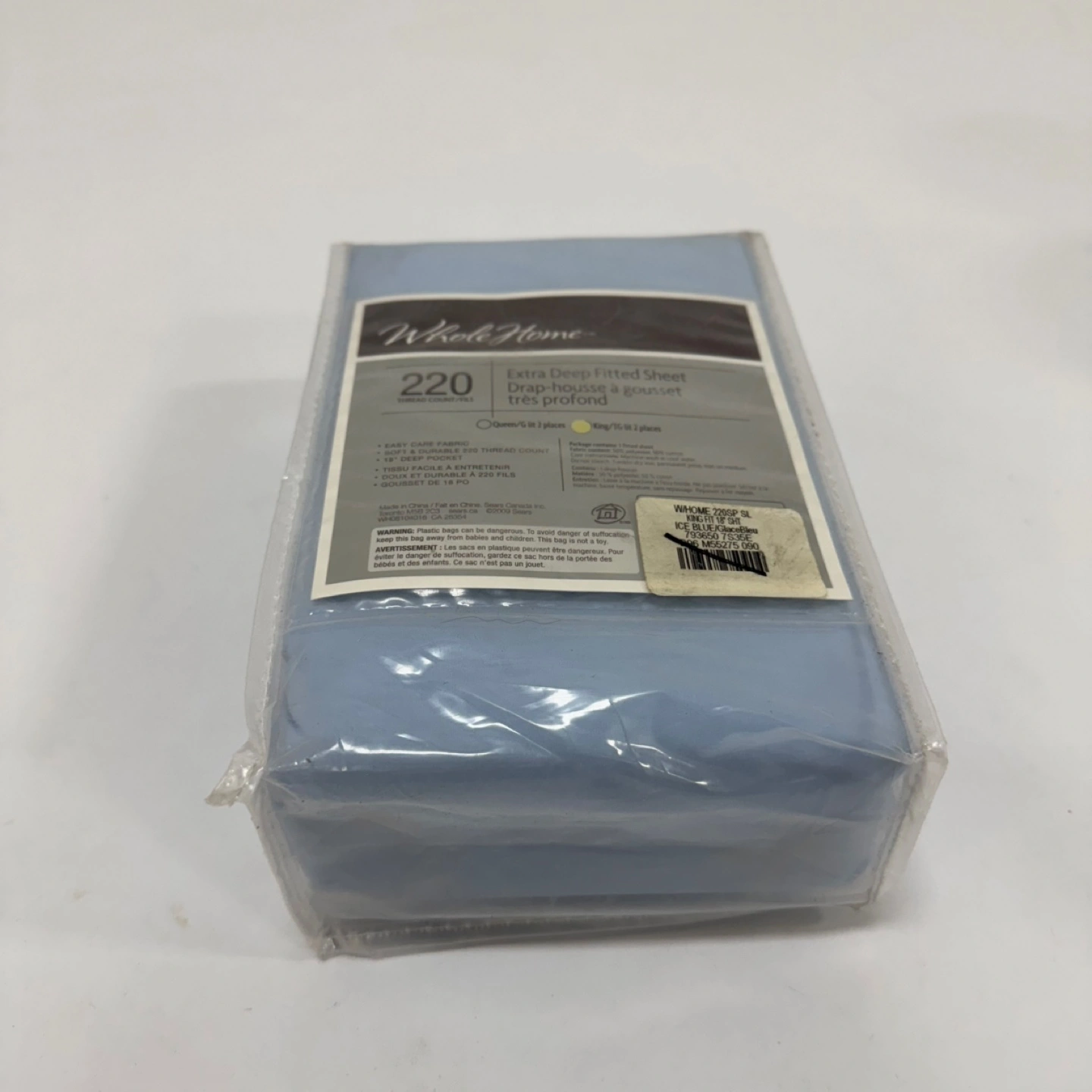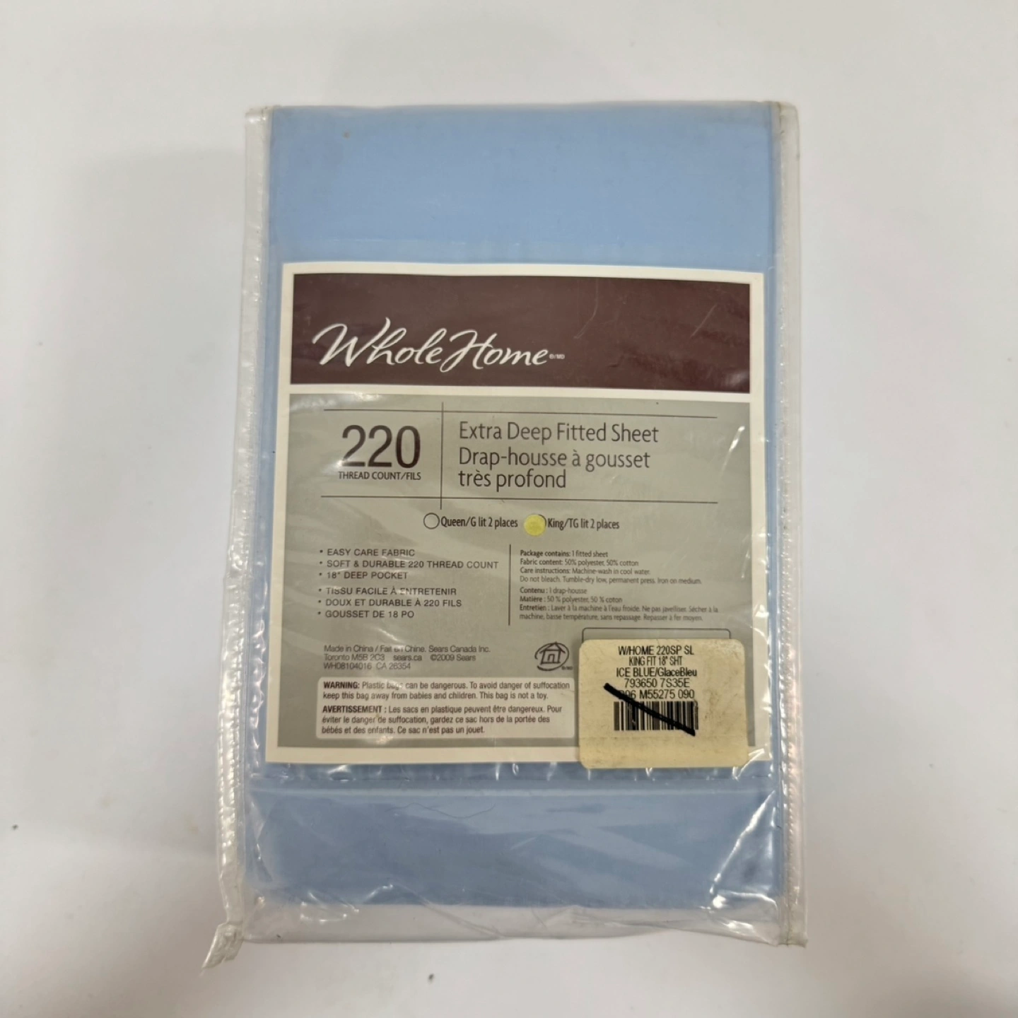 93Brand new WholeHome fitted sheet in King size, Ice Blue color. Made with soft and durable 220 thread count fabric. Features an 18” deep pocket to fit extra-deep mattresses. Still sealed in original packaging. ✨ Size: King (1 fitted sheet) 🩵 Color: Ice Blue 🧵 Thread Count: 220 🆕 Condition: Brand new, sealed 📍 Pickup in North york Delivery available for extra (G)