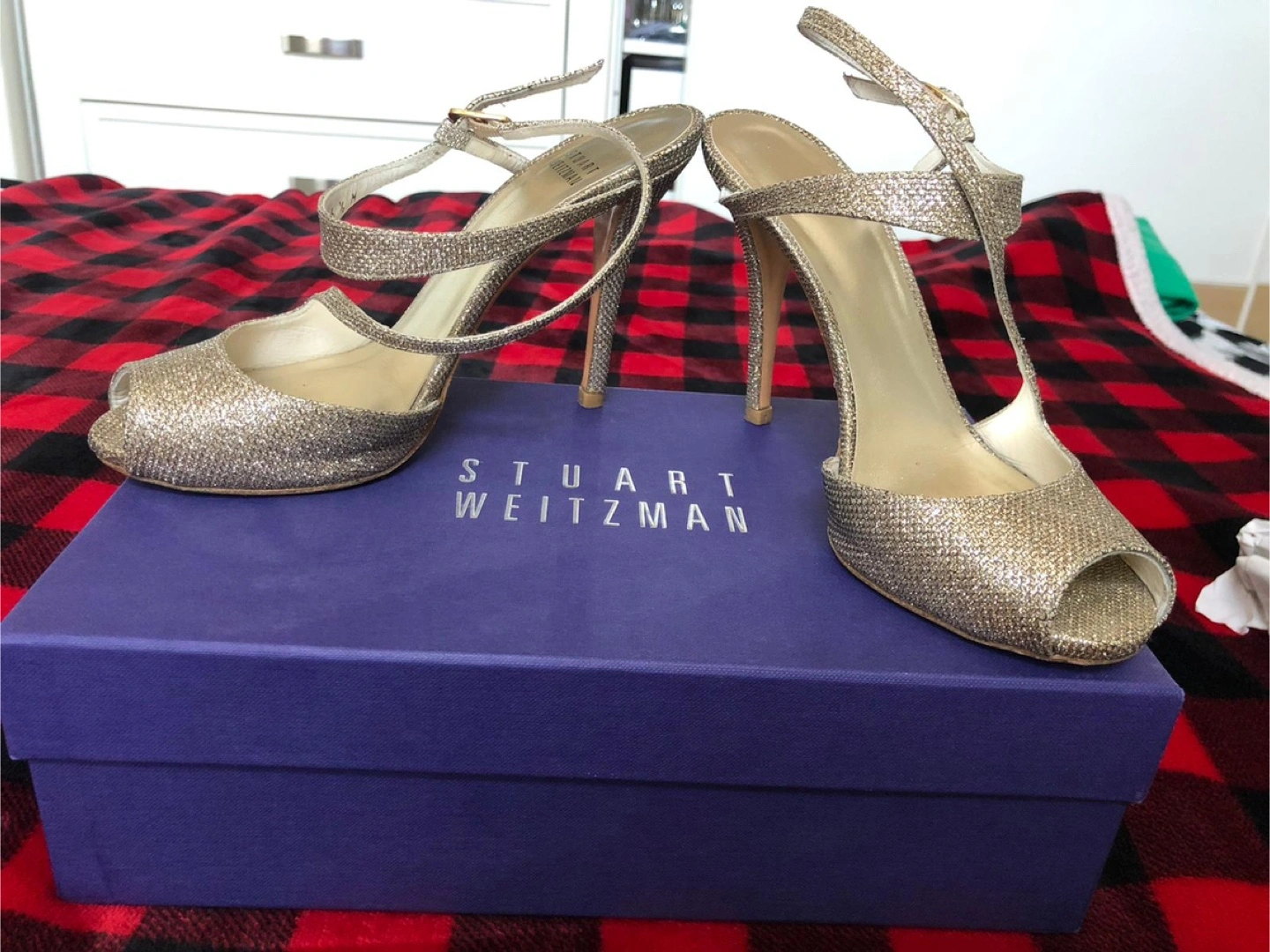 These Stuart Weitzman heels are in great condition and ready for a night out! They're a beautiful gold colour and come in their original box. The size Original Price: $620