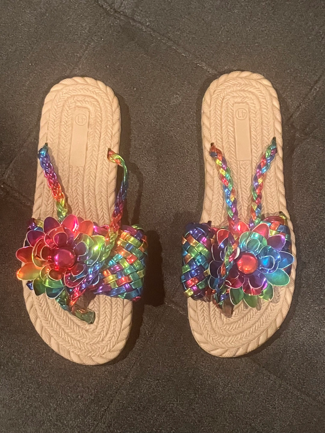 Rainbow Woven Flower Sandals - Size 8.5