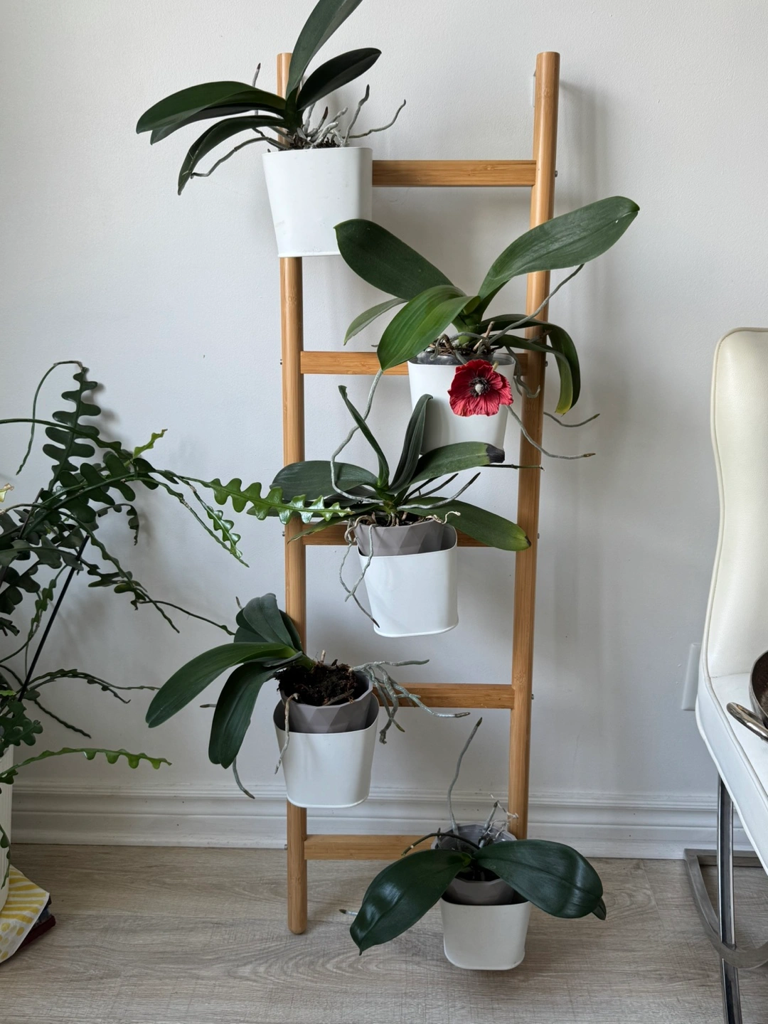 Selling an IKEA plant ladder shelf! It's in great condition and perfect for displaying your plants. It measures approximately 50 inches in height and 14 inches wide. A stylish way to add some greenery to your space.