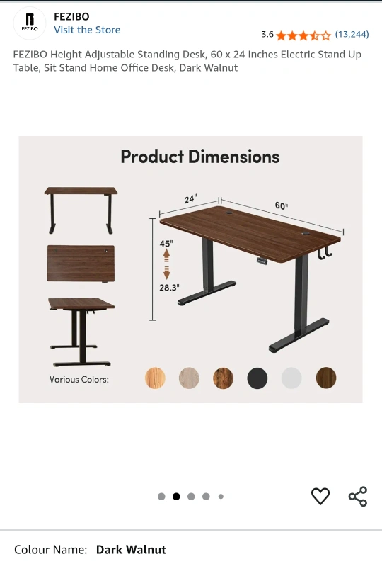 326Selling a FEZIBO height-adjustable standing desk in dark walnut! It's 60 x 24 inches and has an electric stand-up feature. Perfect for a home office setup! Original price is at $269.99. It's been used for a year. Only available for pick up at my place near college station anytime after August 17th! Might need two people to carry this.