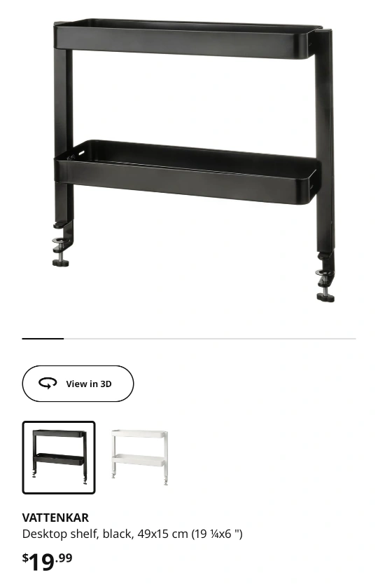 326Selling an IKEA Vattenkar desktop shelf in black. Originally bought for $19.99 Only available for pick up at my place near college station!