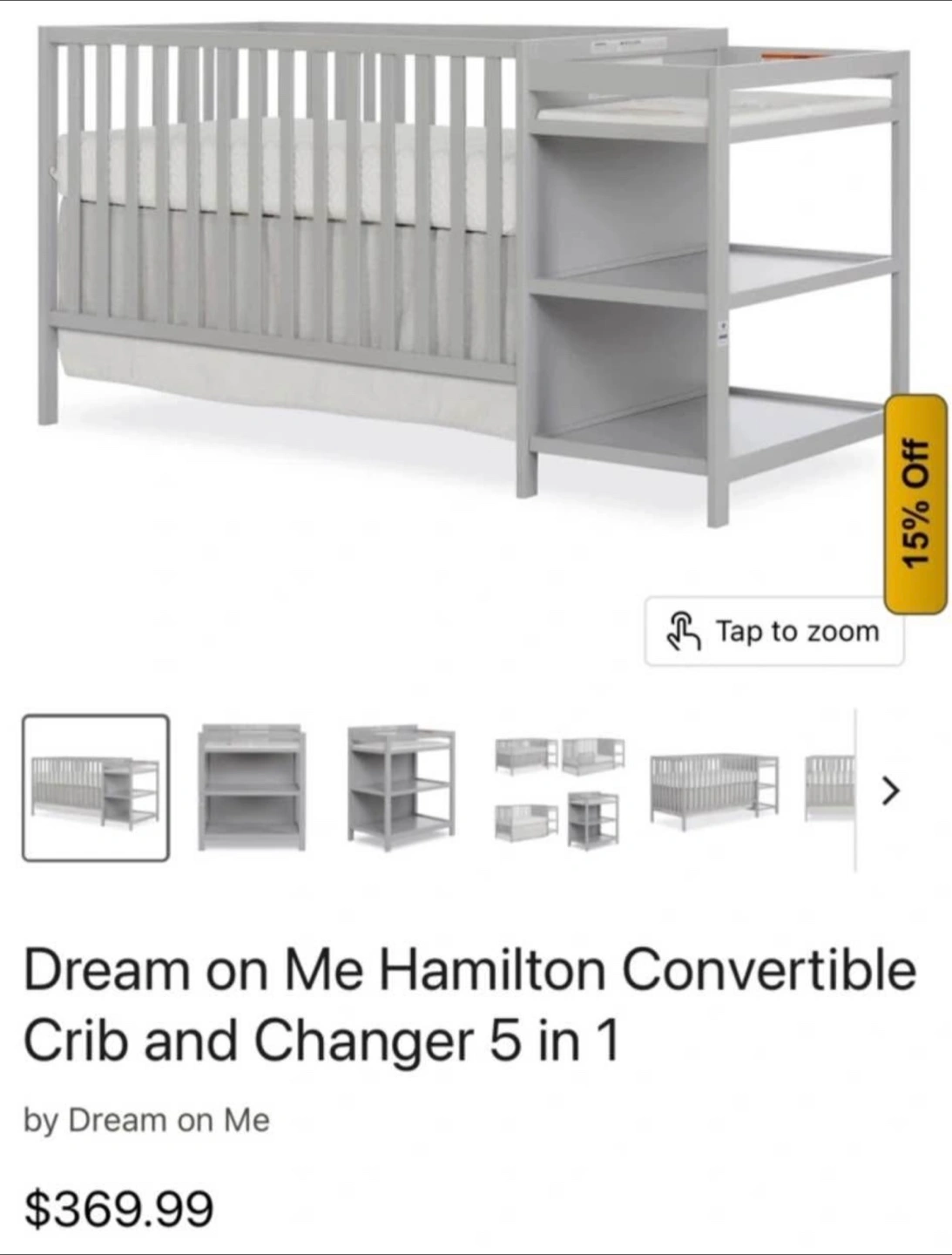 Selling a Dream on Me Hamilton Convertible Crib and Changer 5 in 1. It's in great condition and ready for a new home. Originally bought for $369.99