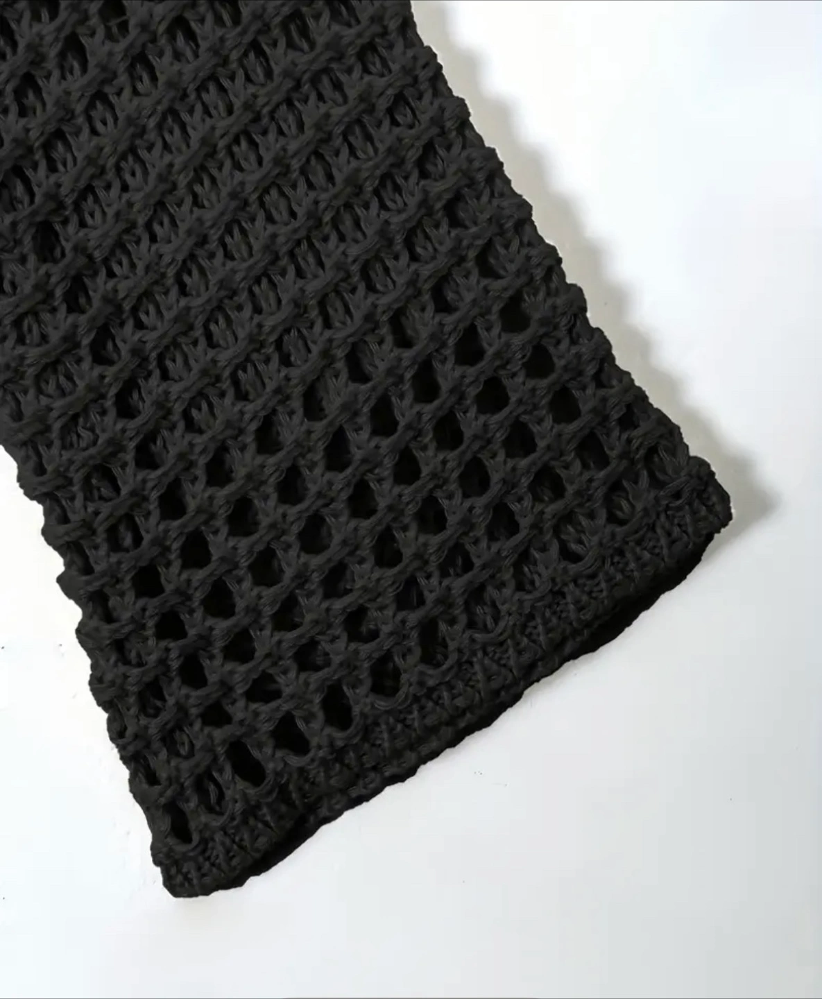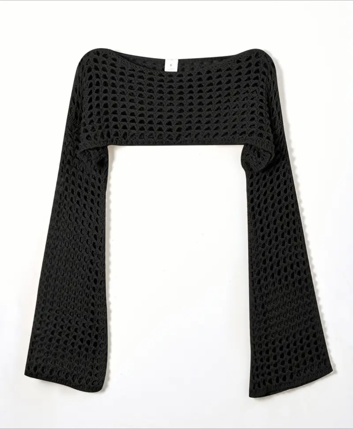 Check out this black crochet knit shrug! It's a stylish and unique piece to add to your wardrobe. Perfect for layering or adding a bit of flair to any outfit. It's in excellent condition and ready for a new home