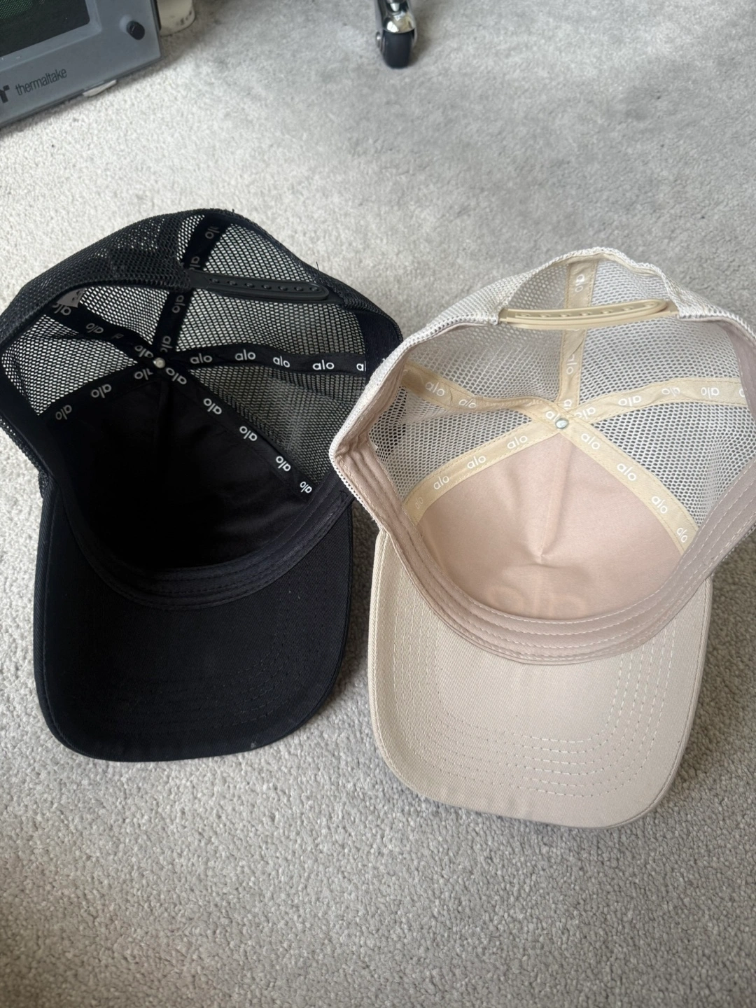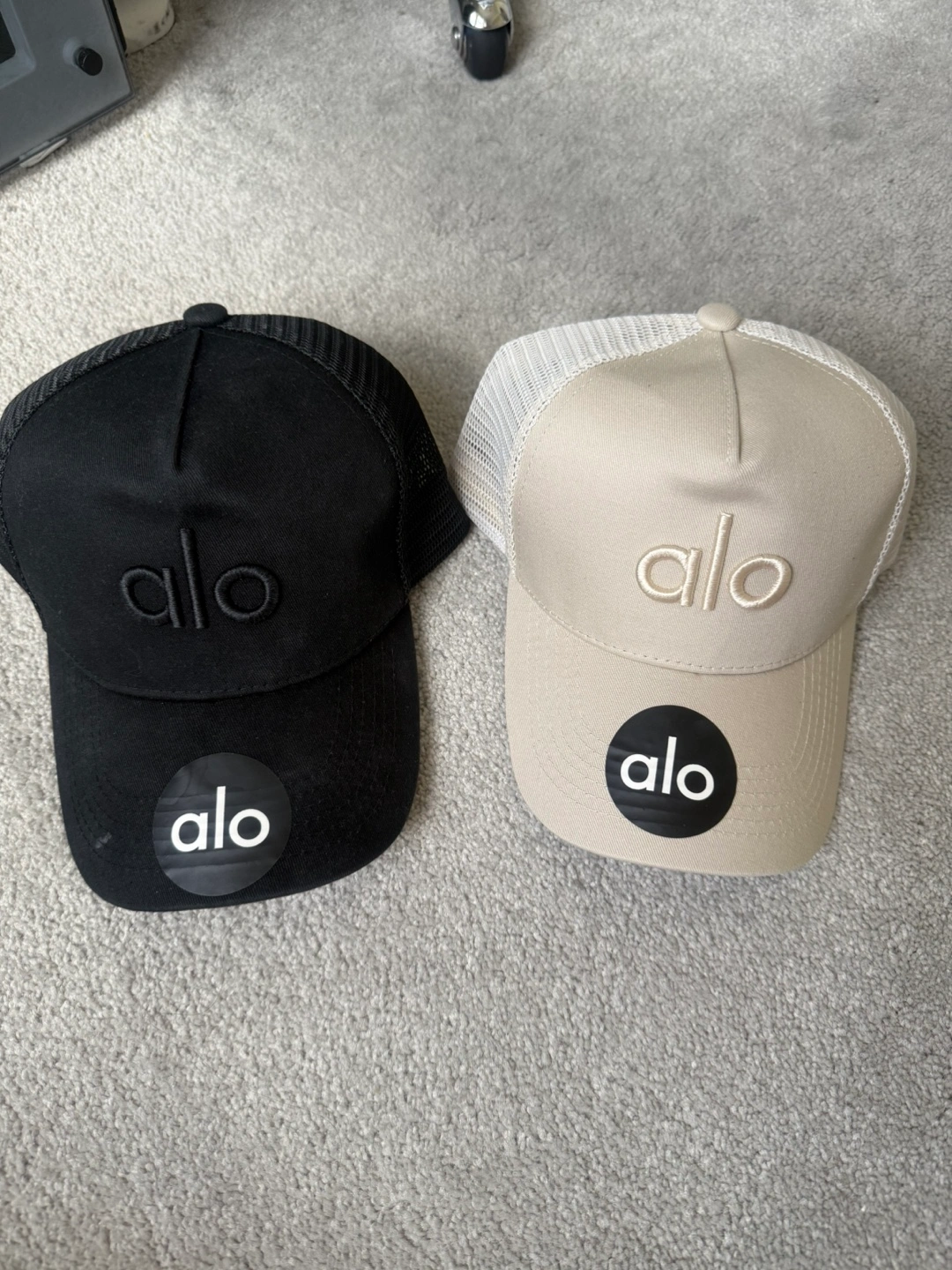 Trendy caps in black and beige. Never worn. Unisex and adjustable. $25 each