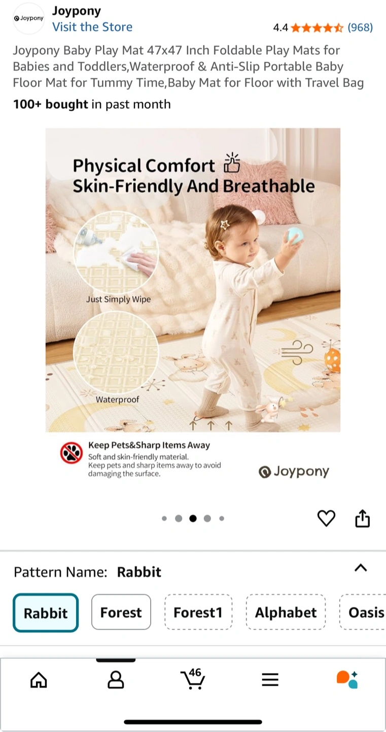 Selling this brand new Joypony Baby Play Mat 47x47 Inch Foldable Play Mats for Babies and Toddlers,Waterproof & Anti-Slip Portable Baby Floor Mat for Tummy Time,Baby Mat for Floor with Travel Bag.