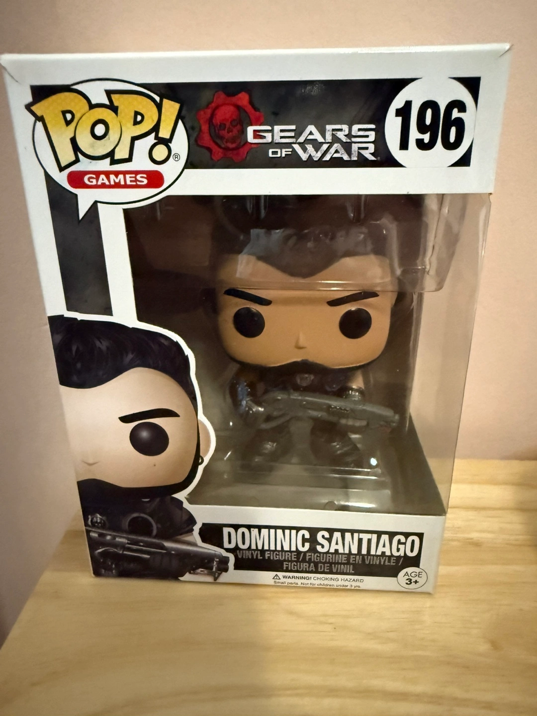 Selling a Funko Pop! figure of Dominic Santiago from Gears of War. This is #196 in the series and is in excellent condition. Great for any Gears of War fan or Funko collector!