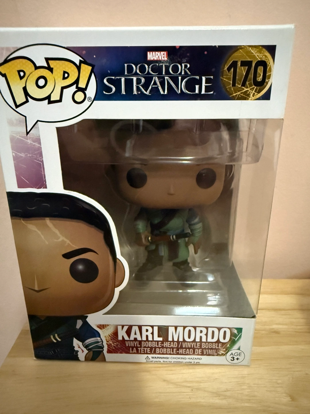 Selling a Funko Pop! figure of Karl Mordo from Marvel's Doctor Strange series. This is #170 in the Pop! collection. The figure is a vinyl bobble-head and is in its original box. Suitable for ages 3+