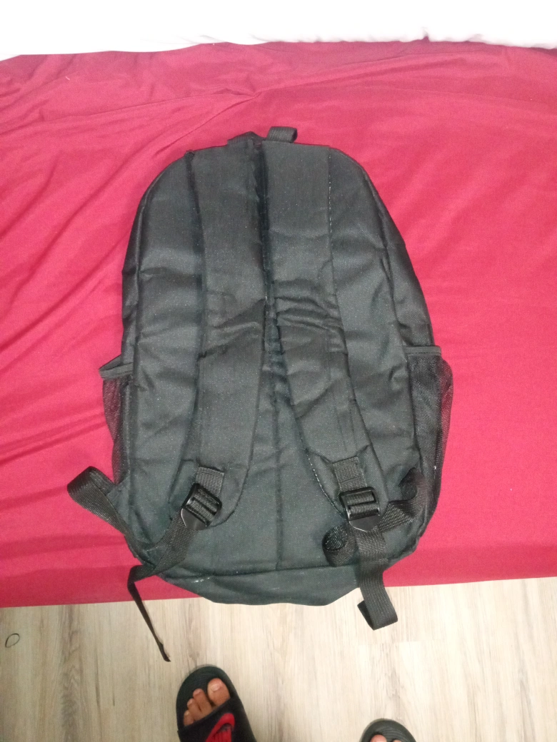 Selling a black backpack with the Attack on Titan logo. It's in great condition and perfect for carrying your books or other essentials. The backpack features adjustable straps and multiple compartments for organization. It's a stylish and practical choice for any fan of the series!