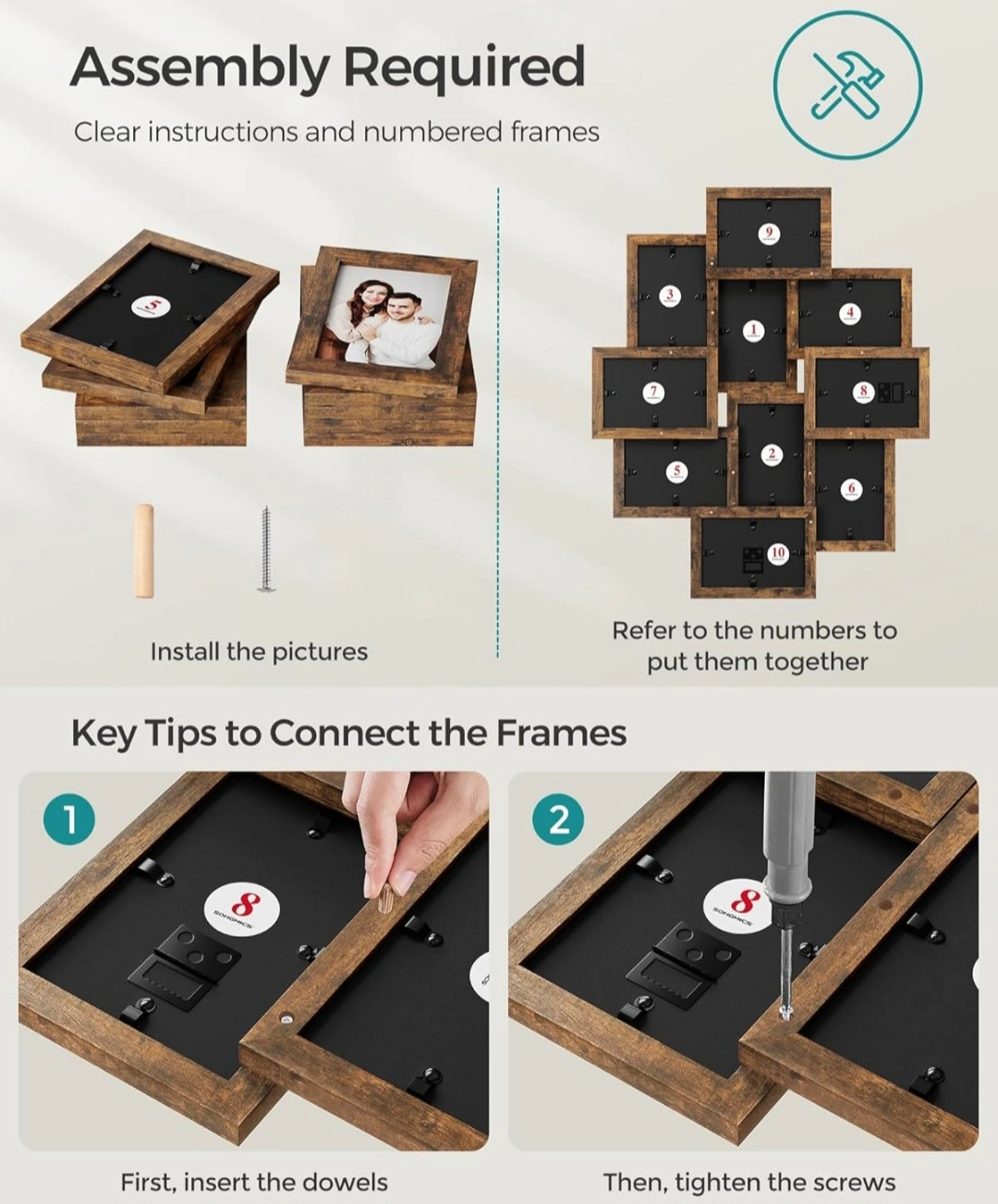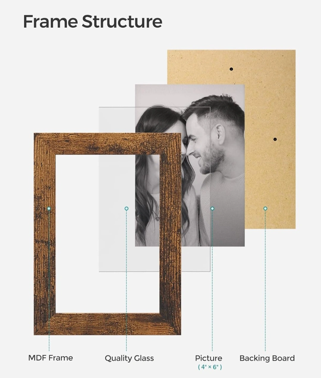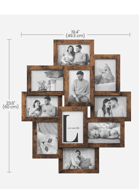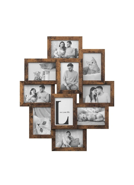 SONGMICS 4x6 Collage Picture Frames for Wall Decor, 10 Pack Family Photo Collage Frame Set for Gallery, Glass Front, Assembly Required, Rustic Brown URPF020X02. (537)