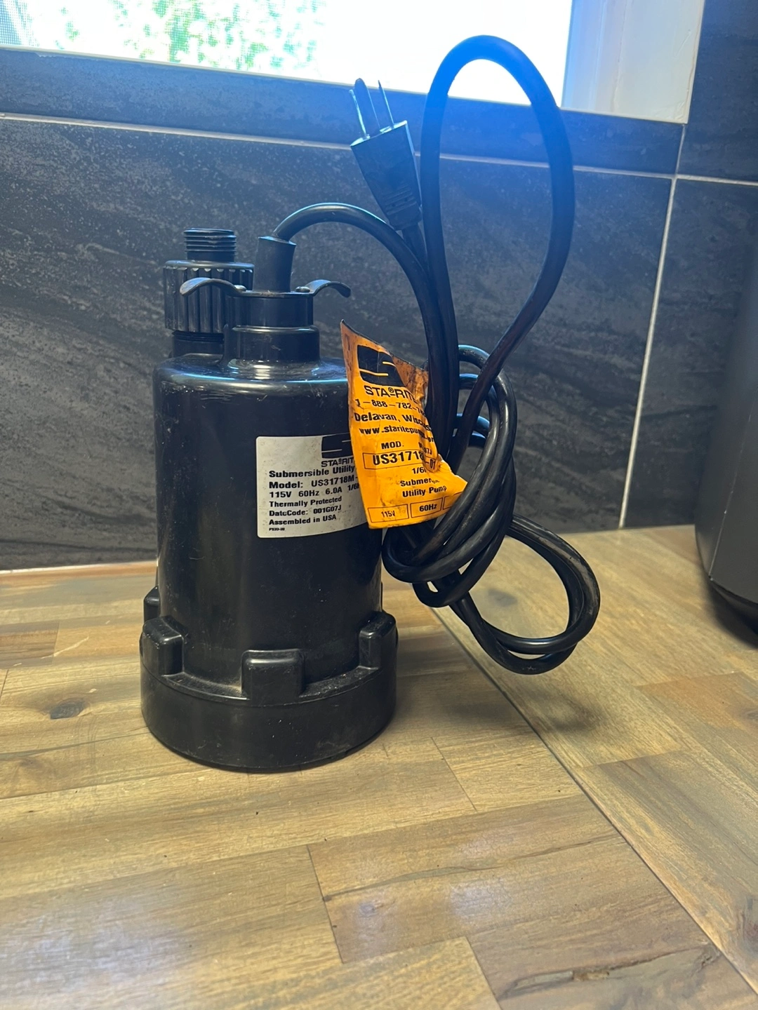 Sta-Rite ®️ submersible utility pump. It's a 115V, 60Hz, 6.0A, 1/6HP pump. Thermally protected and assembled in the USA. Used, but works perfectly. No frays on the cord, bottom of pump is almost new. Perfect for pools, ponds, etc. PICK UP LOCATION: Marlborough.