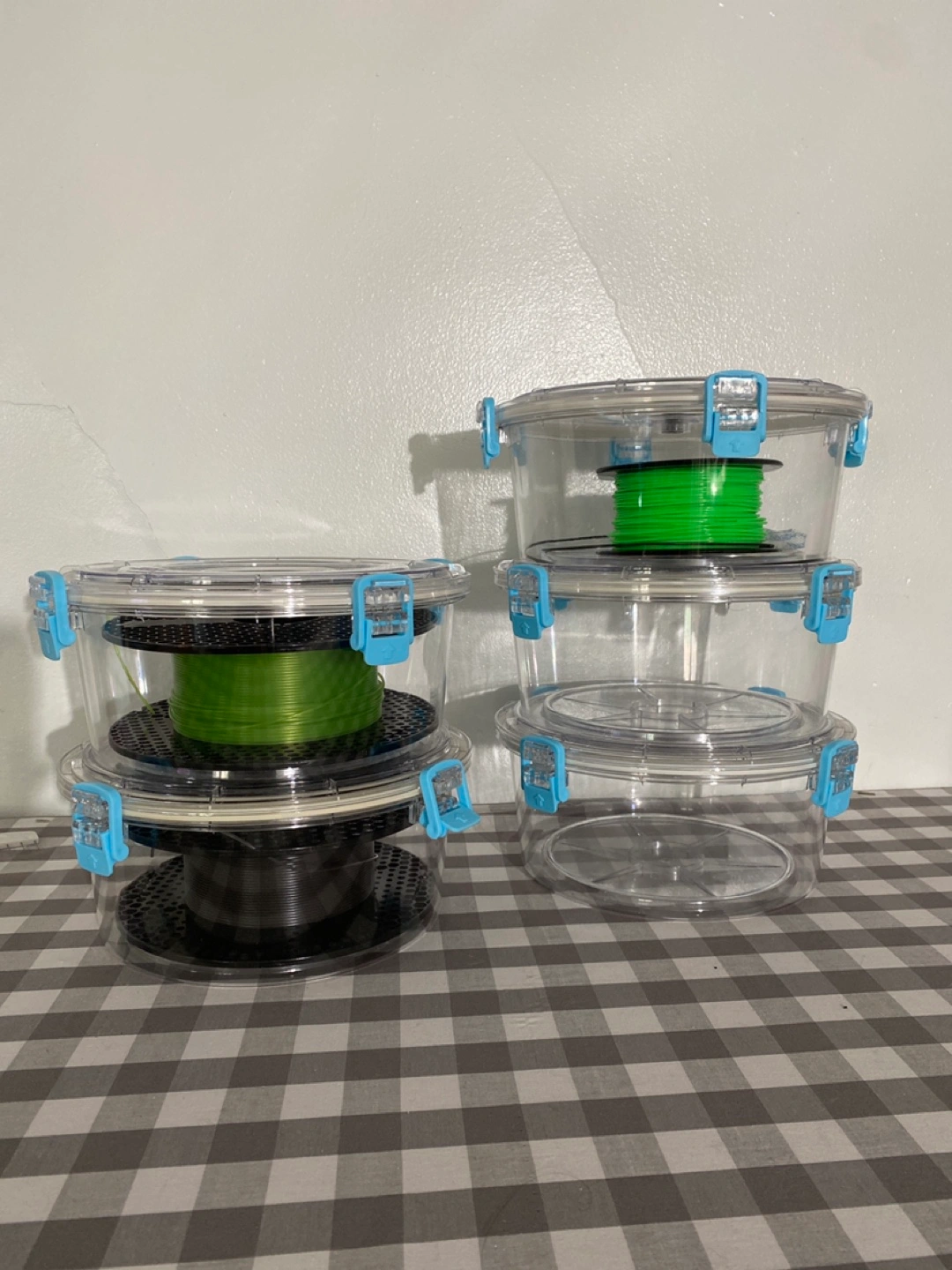 These work great and are in great condition (I’m downsizing). Keeps the humidity out of your 3d printing filament. Filaments in photo not included. Includes 5 containers and 1 pump. Paid $125 for these new.