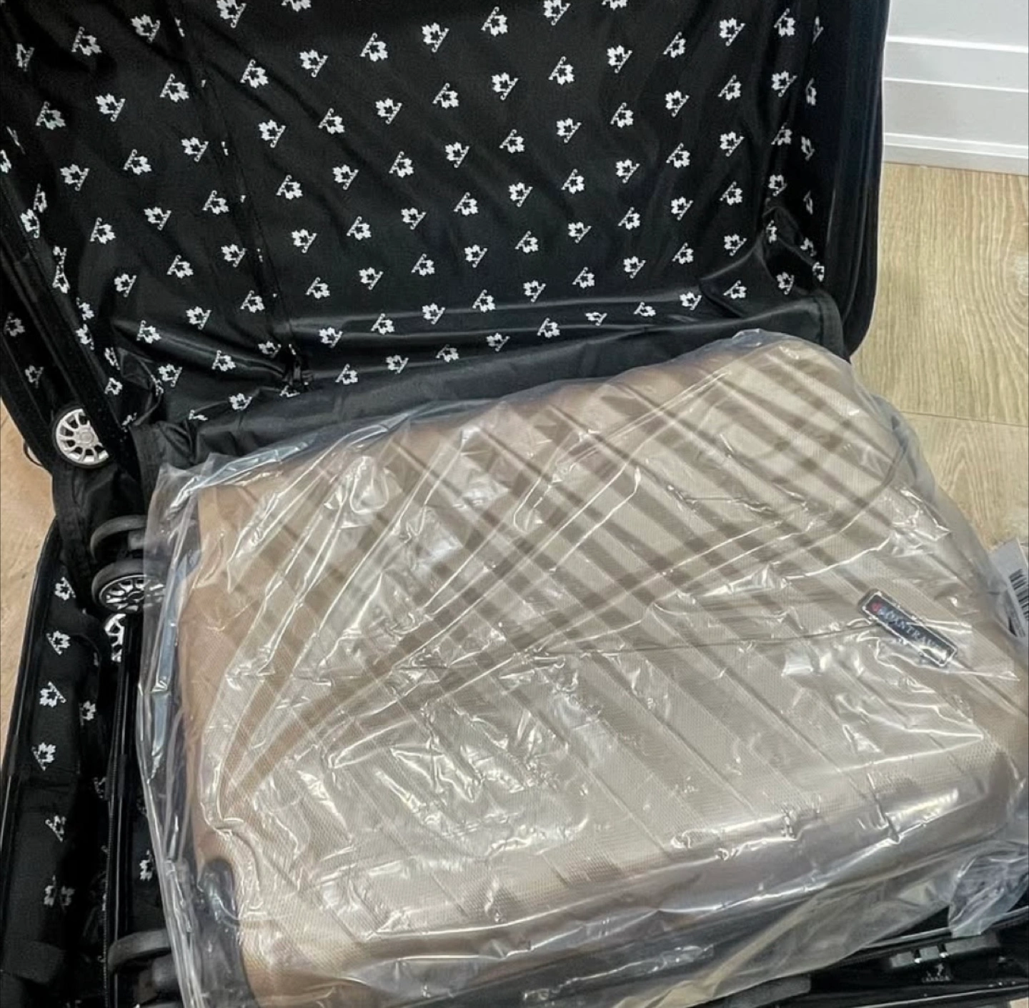 Selling a brand new 3-piece luggage set! This set includes three different sizes of suitcases, perfect for all your travel needs. The luggage is a stylish, gold colour.