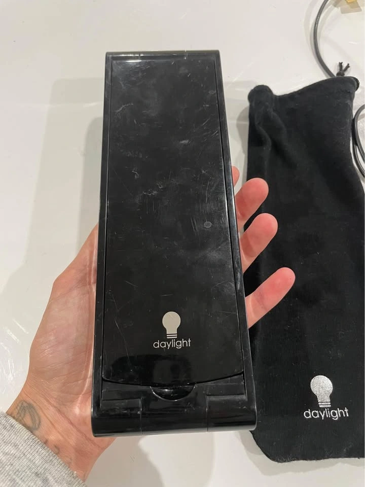 Works very well, outside has wear but that is the nature of the material because I didn’t use it that much. Retail was $130. Great for having consistent lighting with artwork. Portable. Can use batteries instead of usb. Does not store a charge without batteries.
