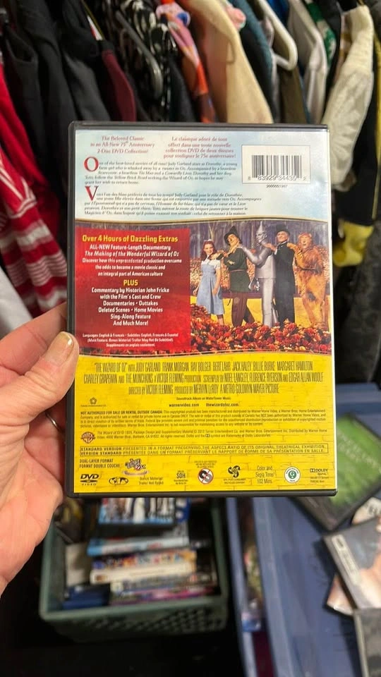 Relive the magic of a timeless classic with this 75th Anniversary edition of 'The Wizard of Oz' on DVD. This special edition includes beautifully restored picture and sound, bringing Dorothy and her friends to life like never before. The DVD comes in its original case, which is in good condition, with minimal wear. The disc itself is clean and free from scratches, ensuring a delightful viewing experience. Perfect for family movie nights or as a collector's item. This beloved film is a must-have for any movie enthusiast's collection!