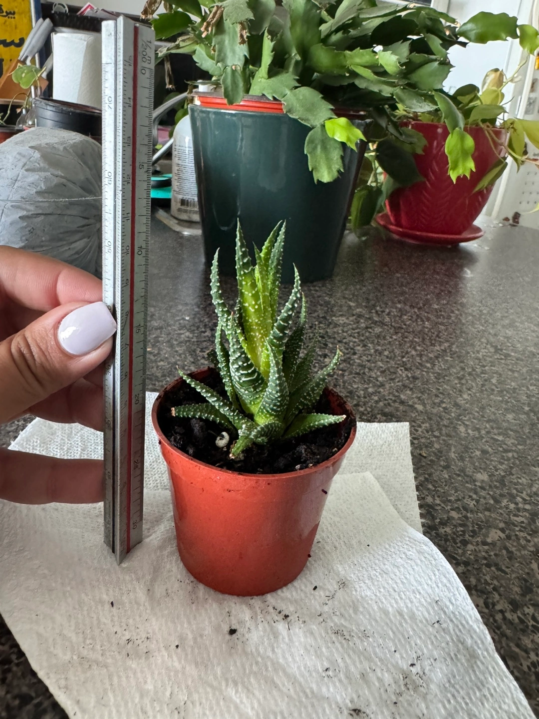 A cute Haworthia Zebra plant in a plastic pot! It's a small, easy-to-care-for succulent that would look great on a windowsill or desk. The plant is healthy and well-rooted, ready to brighten up your space