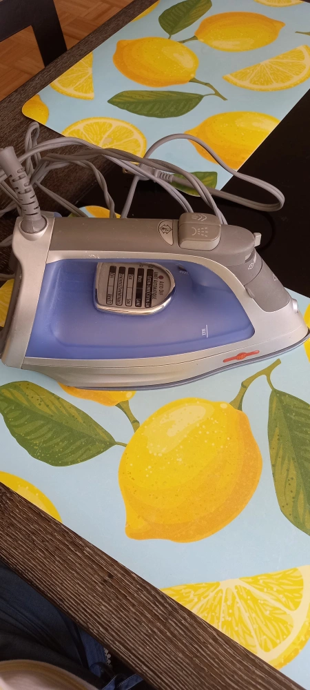 Selling a used steam iron. It's in good working condition, perfect for getting those wrinkles out of your clothes. It has a blue water reservoir and a variety of steam settings. It's ready for a new home!