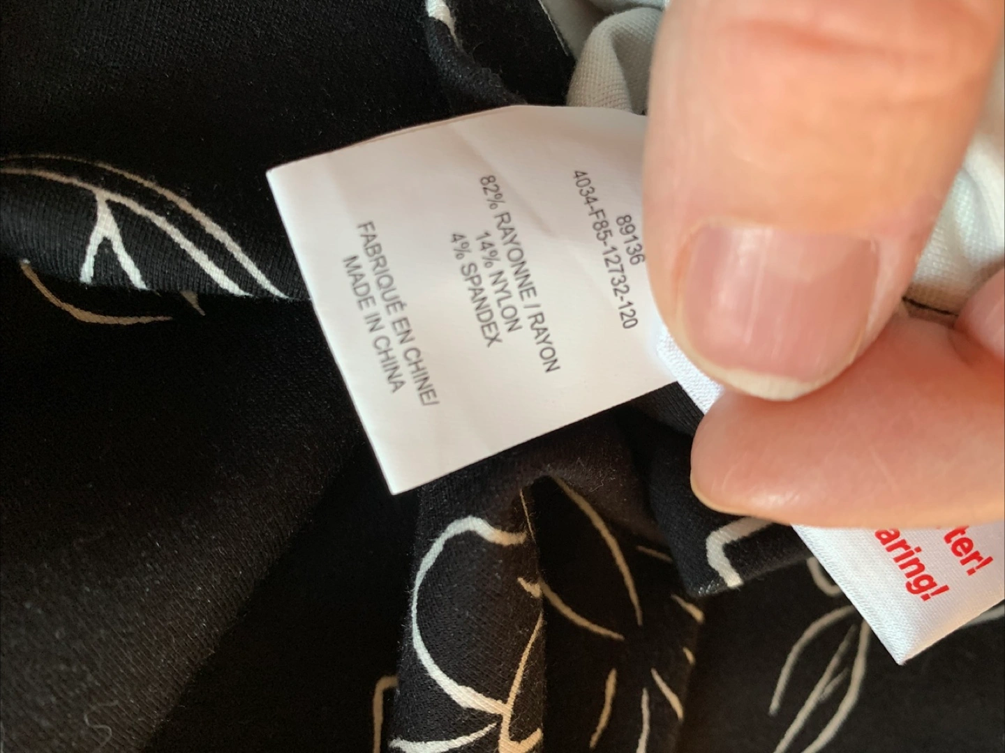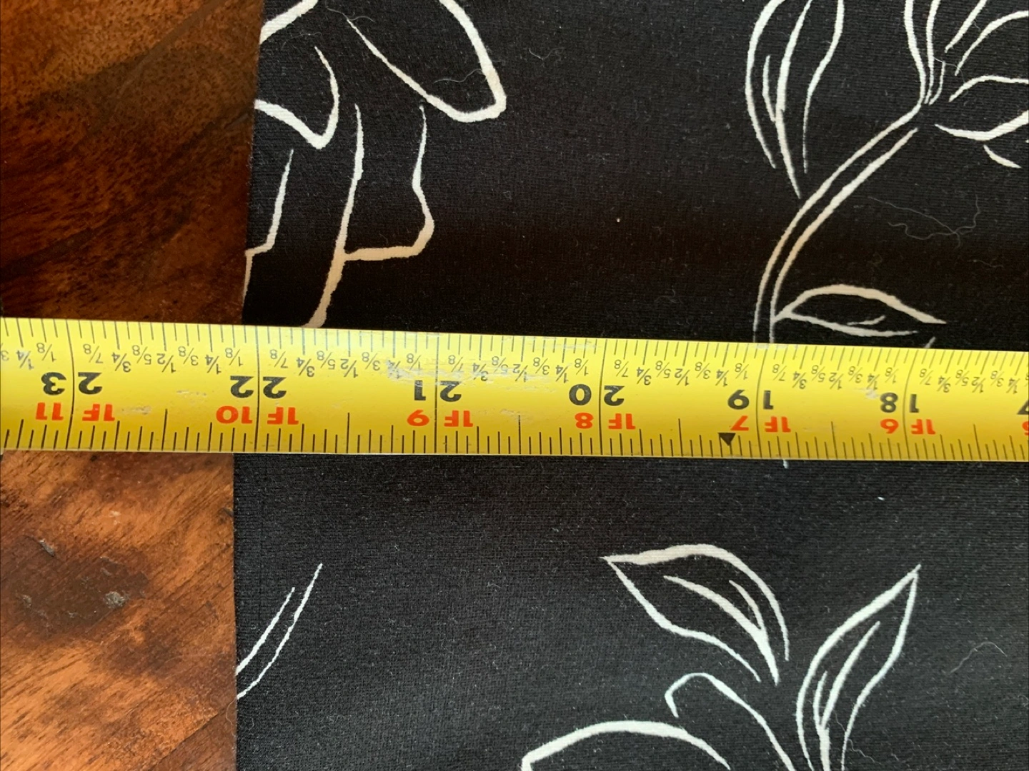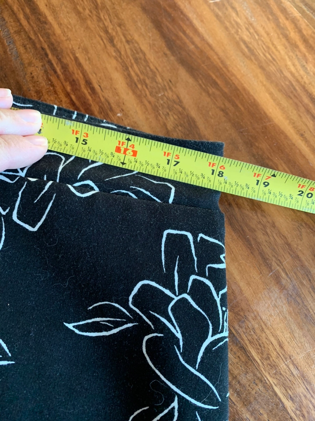 Laura Petites skirt in size XL. The skirt is black with a white floral pattern. It's made of 82% rayon, 14% nylon, and 4% spandex. The skirt measures approximately 22 inches in length.