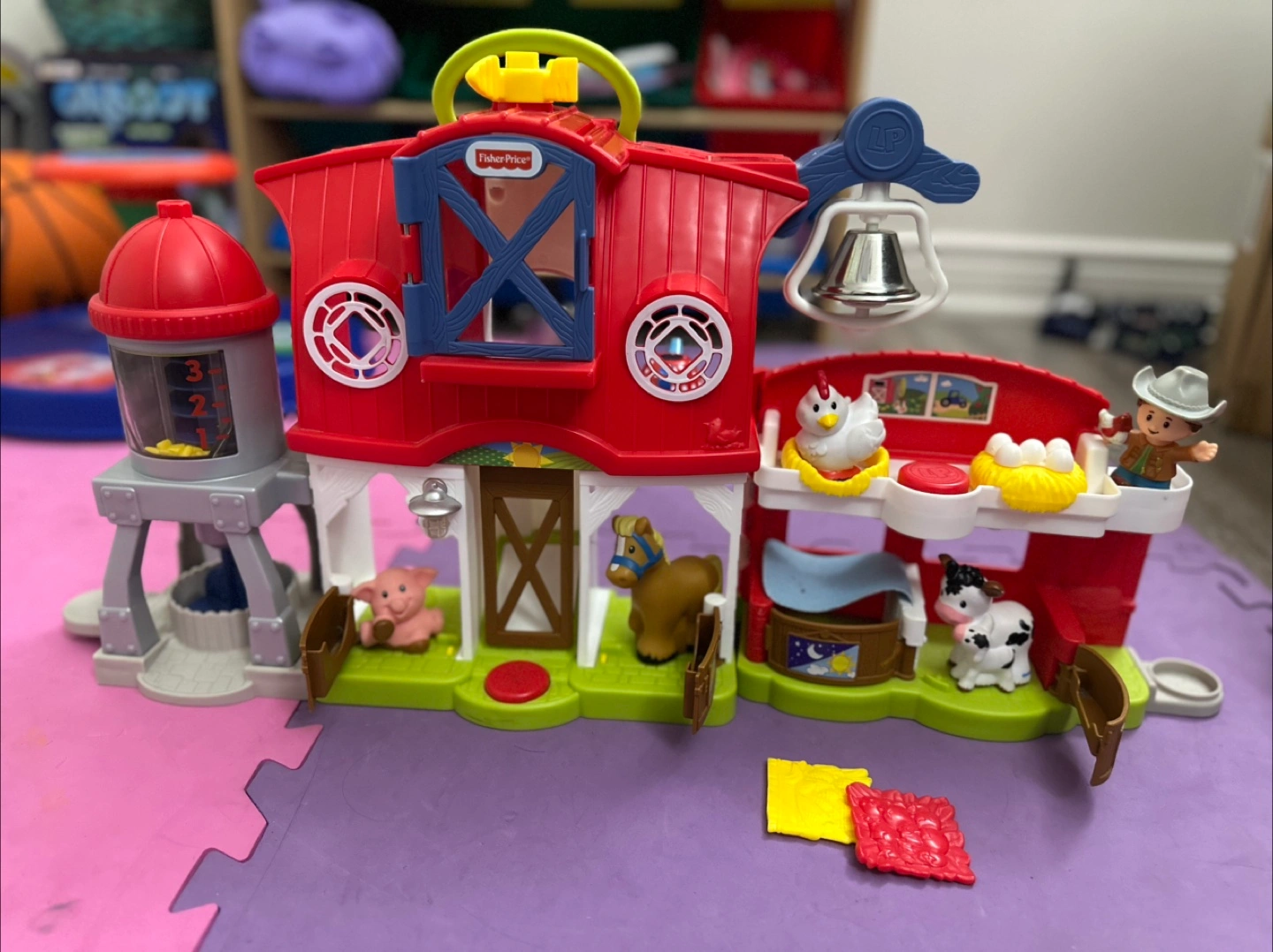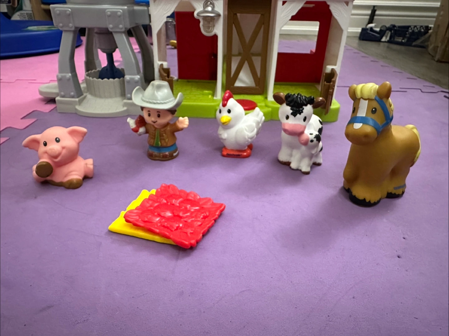 Selling a Fisher-Price Little People farm set. It includes the barn, farmer, and several animals like a pig, chicken, cow, and horse. Great for toddlers and preschoolers!