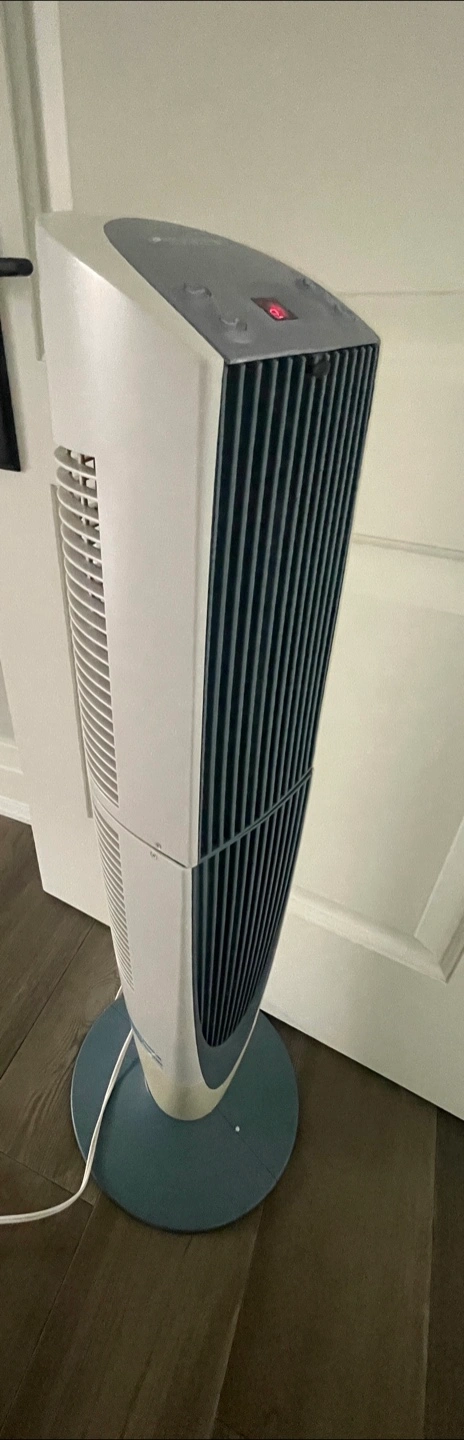Selling a Bionaire tower fan! It's in great shape and ready to keep you cool. This fan features a slim design, making it perfect for any room without taking up too much space. It has multiple speed settings to customize your comfort level. Some discoloration on case, working well!