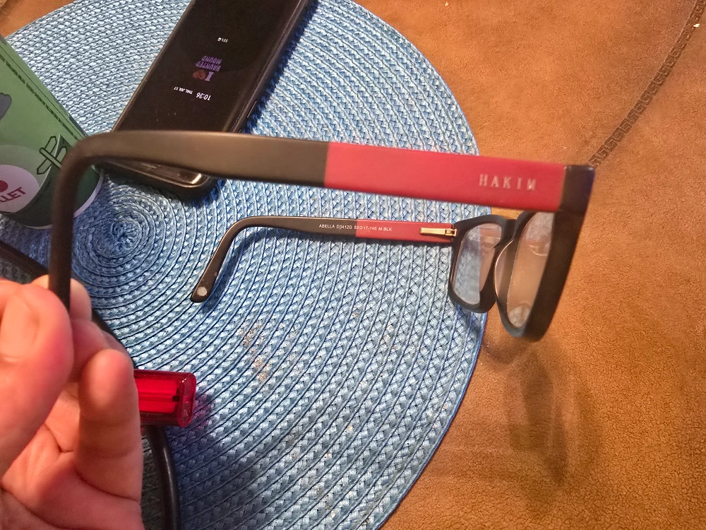 Selling a pair of Hakim glasses. The model is Arella TO4120, size 53-15-145. They feature a stylish black and red design. Perfect for everyday wear!