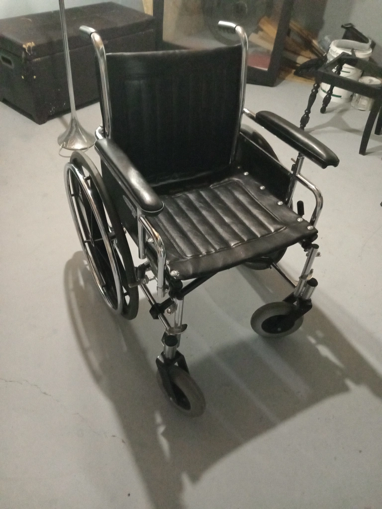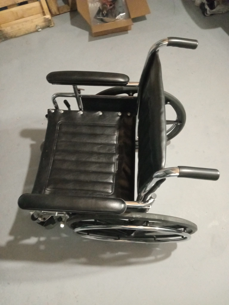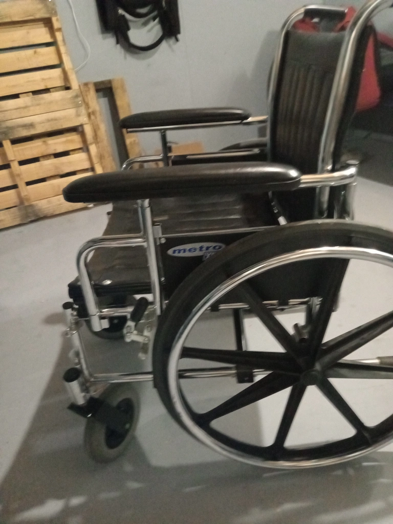 New Metro Mobility, it features a black seat and back, with silver metal frame. Perfect for anyone needing assistance with mobility.