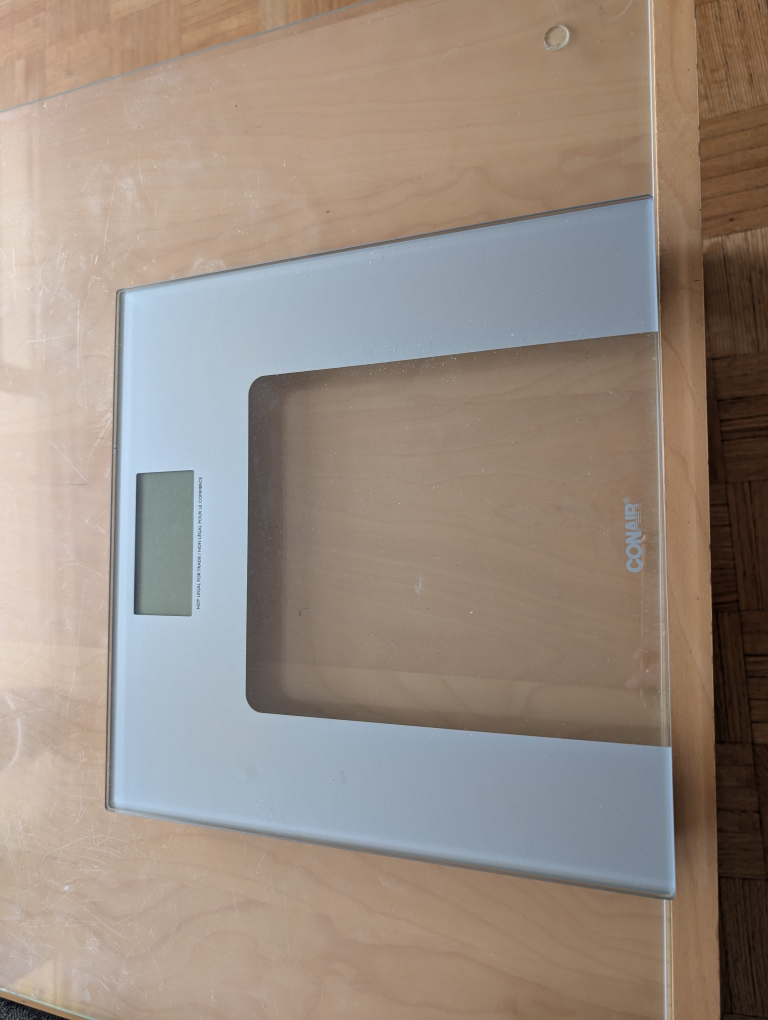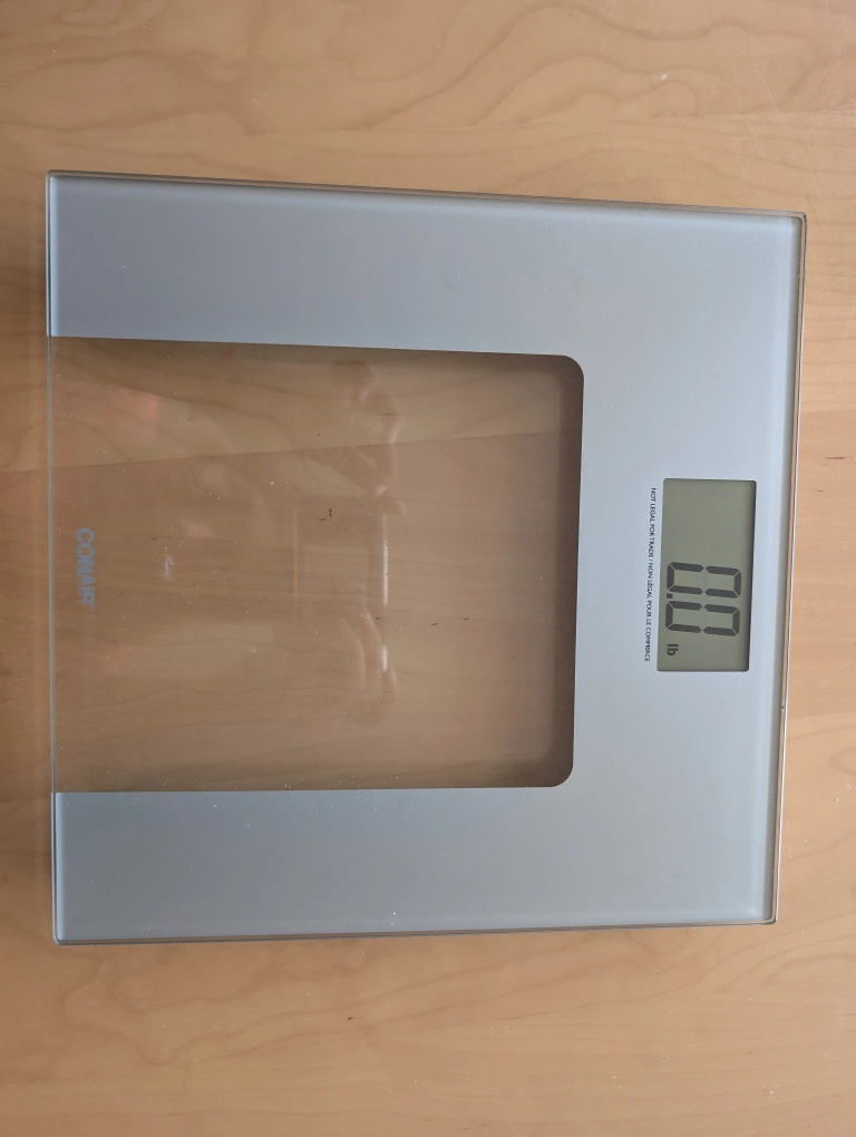 Sleek and modern Conair digital bathroom scale with a clear glass platform. Displays weight in kilograms and pounds with an easy-to-read digital screen. Accurate and reliable measurements. Lightweight yet sturdy design. Works perfectly and is ready to use.