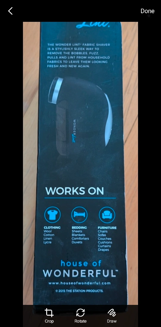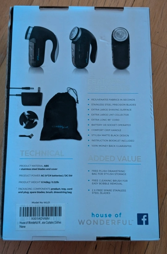 I'm selling a brand new Wonder Lint fabric shaver from House of Wonderful! It's still in its original packaging. Here are some of its features: - Stainless steel precision blades - Extra large shaving surface - Extra large lint collector - Battery or socket operated - Includes a free plush drawstring bag for stylish storage and 2 x free spare stainless steel blades It works on clothing, bedding, and furniture to remove bobbles, fuzz, pulls, and lint!