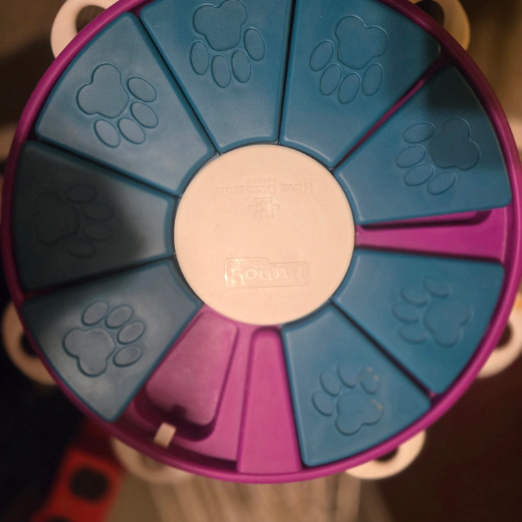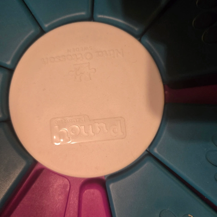 Here's a fun interactive puzzle toy for your furry friend! This Nina Ottosson Outward Hound puzzle will keep your dog entertained and mentally stimulated. It's in great condition and ready for a new home!
