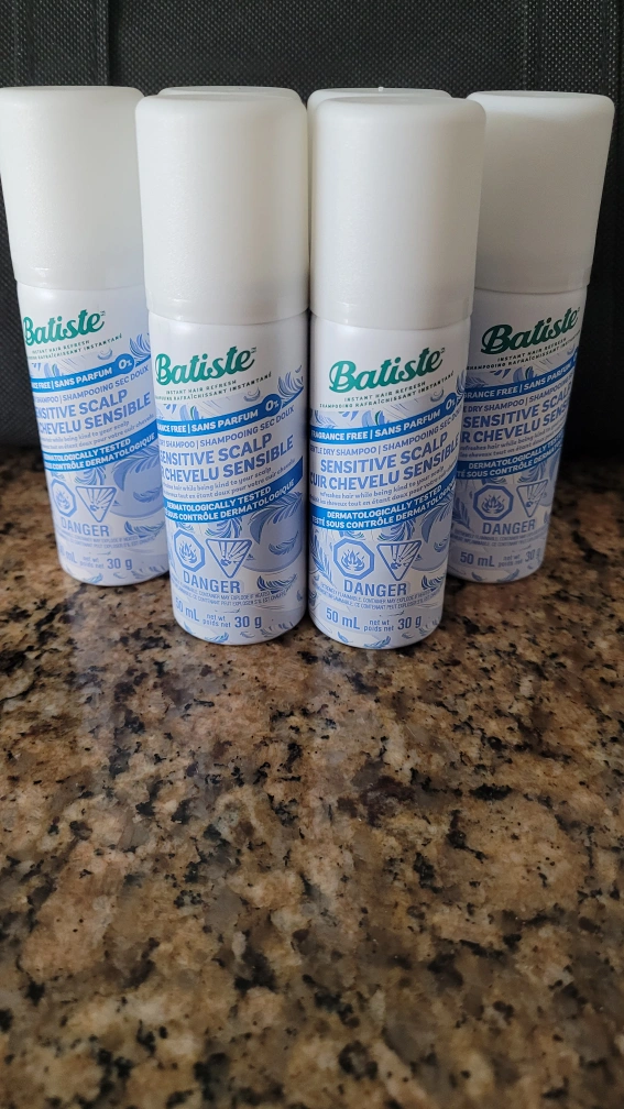 Selling some Batiste Sensitive Scalp dry shampoo. These are great for a quick hair refresh! They are fragrance-free and dermatologically tested. Each travel sizeo bottle contains 50 mL and 30 g of product.