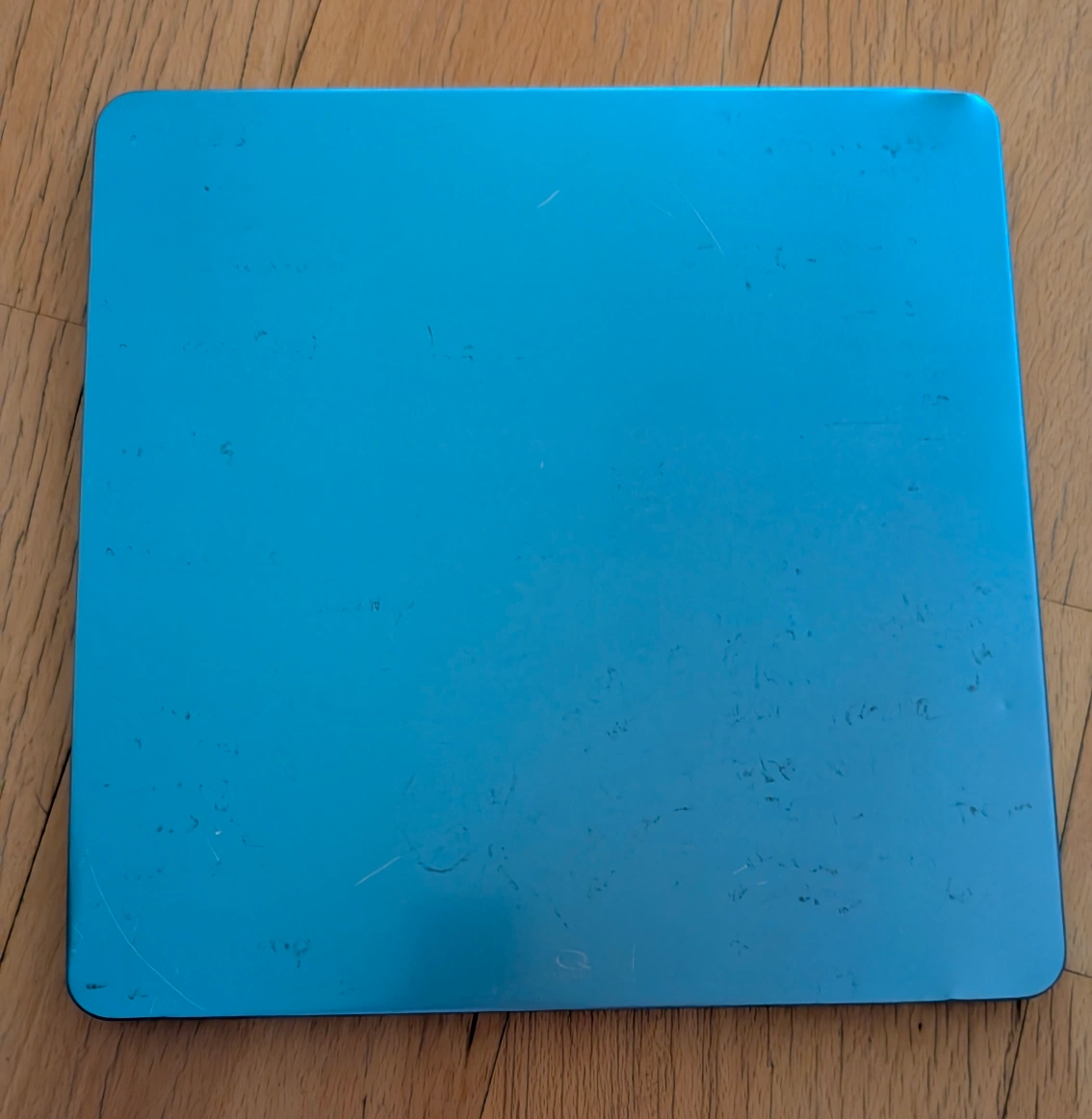 Selling a blue magnetic whiteboard. It has some scratches, but it's still in good working condition. It has 3M strips on the back for mounting.