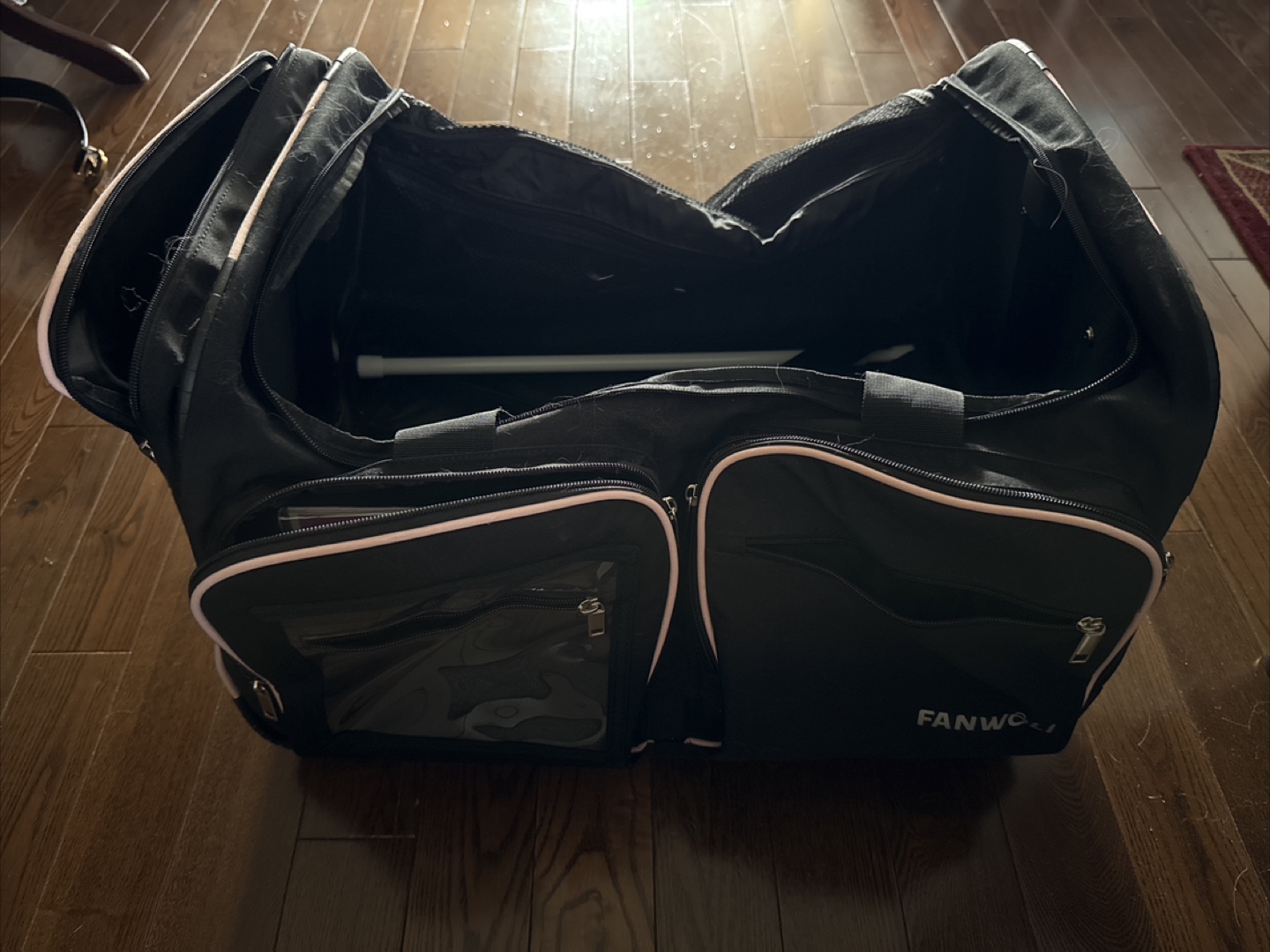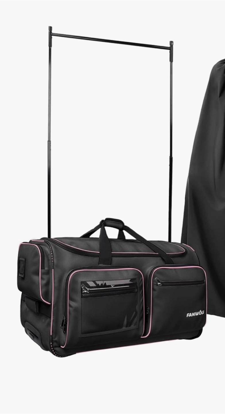 Fanwoli Dance Bag with Garment Rack | Upgraded Stable System & Fabric | 23" Wheeled Duffel Suitcase for Competition & Travel - Ideal Portable Costume Wardrobe for Dancer Athlete Livestreamer
